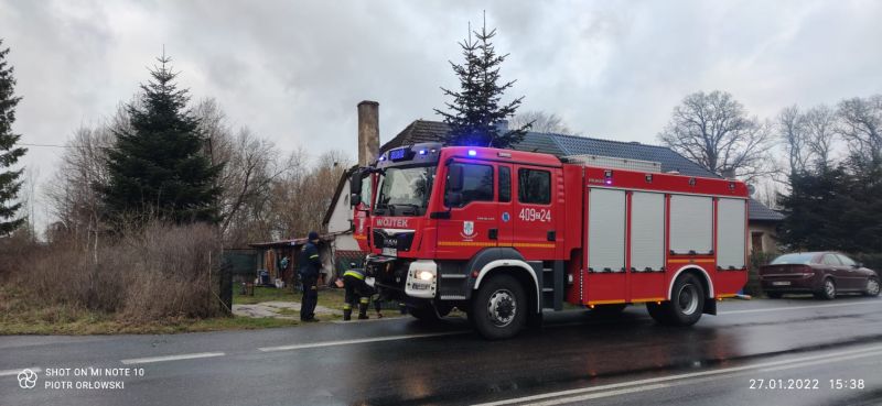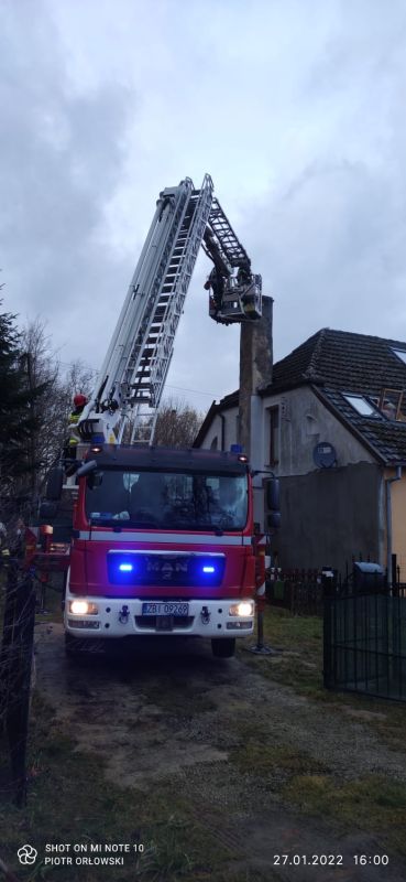 27.01.2022 o godzinie 15:14 do Stanowiska Kierowania Komendanta Powiatowego Państwowej Straży Pożarnej w Białogardzie wpłynęła formatka z informacją o pożarze sadzy w przewodzie kominowym w Karlinie przy ulicy Szczecińskiej.