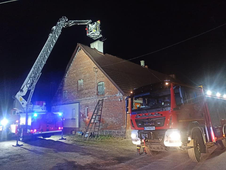 03.03.2022 o godzinie 19:00 Dyżurny Stanowiska Kierowania Komendanta Powiatowego Państwowej Straży Pożarnej w Białogardzie odebrał formatkę ze zgłoszeniem o pożarze sadzy w przewodzie kominowym w miejscowości Gruszewo. Na miejsce udały się zastępy Straży Pożarnej z Białogardu, Rogowa i Stanomina. Strażacy po dojeździe ustali, że doszło do pożaru sadzy w górnych częściach przewodu kominowego. Sprawiony został podnośnik z którego kosza zastęp ugasił palącą się w przewodzie sadzę. Pomieszczenia mieszkalne sprawdzono na obecność tlenku węgla a komin zbadano kamerą termowizyjną. Nie stwierdzono żadnych zagrożeń. Działania zakończono o godzinie 20:22 i udano się do bazy. Przypuszczalną przyczyną zdarzenia było zapalenie się sadzy w przewodzie dymowym.