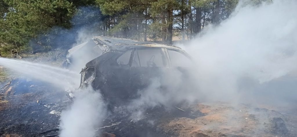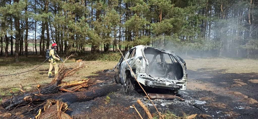 Po dojeździe na miejsce zdarzenia strażacy zabezpieczyli teren i stwierdzili, że na terenie leśnym doszło do pożaru samochodu osobowego.