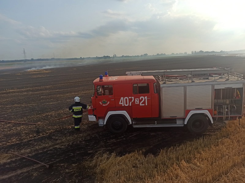 Pożar ścierniska i kombajnu w miejscowości Daszewo