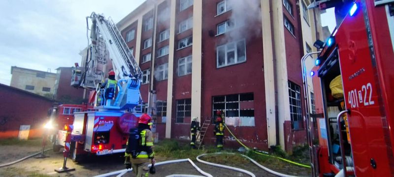 Pożar w budynku po zakładach Unitra