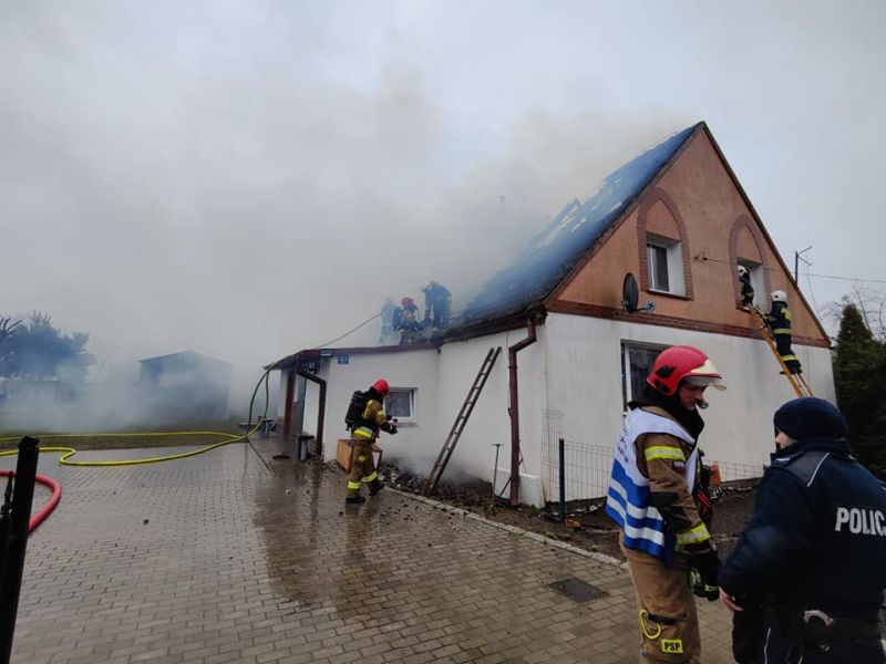 05.04.2022 o godzinie 16:34 Dyżurny Stanowiska Kierowania odebrał zgłoszenie o pożarze budynku mieszkalnego w miejscowości Kamosowo. Na miejsce zadysponowane zostały jednostki straży pożarnej z Białogardu, Rogowa, Stanomina i Karlina. Strażacy po dojeździe na miejsce zdarzenia podali informacje, że pożarem objęty jest cały dach budynku a mieszkańcy samodzielnie opuścili mieszkania. Na miejsce wezwane zostały dodatkowe siły. Działania polegały na zabezpieczeniu miejsca zdarzenia. Podano prądy wody w natarciu na palący się budynek i poddasze. Pożar został ugaszony. Na miejscu zdarzenia występowało bardzo duże zadymienie utrudniające akcję gaśniczą. Mimo skali zniszczeń nikt z mieszkańców nie ucierpiał. Działania zakończono o godzinie 21:38. Przypuszczalna przyczyna zdarzenia pozostała nieustalona. Straty oszacowano na 300 tys. złotych.