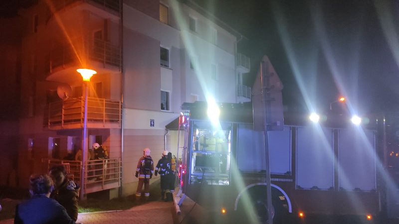 20.10.2021 o godzinie 20:26 Dyżurny Stanowiska Kierowania Komendanta Powiatowego Państwowej Straży Pożarnej odebrał zgłoszenie o widocznych płomieniach na balkonie znajdującym się na parterze budynku zlokalizowanego w Karlinie przy ulicy 4go Marca. Zgłaszający słyszał również wybuch poprzedzający powstanie pożaru. Brak informacji o osobach poszkodowanych. Na miejsce zadysponowane zostały jednostki z Białogardu i Karlina oraz dodatkowe siły w postaci Policji i ZRM. Strażacy po dojeździe na miejsce zdarzenia w wyniku rozpoznania stwierdzili, że pożarem objęte są meble zmagazynowane na balkonie budynku oraz elementy wewnątrz mieszkania: zasłony i ubrania. Brak osób poszkodowanych. Działania zastępów polegały na zabezpieczeniu miejsca zdarzenia. Z powodu podejrzenia wybuch ewakuowano mieszkańców bloku: około 30 osób. Następnie Strażacy podali prąd wody z szybkiego natarcia na palące się obiekty. Pożar został ugaszony. Działania zakończono o godzinie 21:08. Straty oszacowano na 10 tysięcy złotych a przypuszczalna przyczyna zdarzenia nie została ustalona.