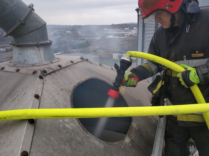 17 listopada 2020 r. ok. godz. 14.30 na ulicy Połczyńskiej/Bocznej w Białogardzie doszło do pożaru pyłu w kolumnie suszarnianej. Działania zastępów straży pożarnej polegały na zabezpieczeniu miejsca zdarzenia. Następnie odłączono zasilanie i przystąpiono do próby gaszenia pożaru z podnośnika - niestety utrudniony dojazd uniemożliwił użycie w akcji gaśniczej pojazdu SHD. Strażacy przy pomocy linki strażackiej wciągnęli linię gaśniczą na szczyt suszarni i rozpoczęli gaszenie przez właz technologiczny. Następnie przy pomocy akumulatorową szlifierki kątowej, wykonano otwór w miejscu, gdzie najwyższą temperaturę wskazała kamera termowizyjna i podano prąd wody gasząc pożar. W działaniach brały udział cztery zastępy strażackie z KP PSP w Białogardzie, a straty oszacowano na 100 tys. zł.