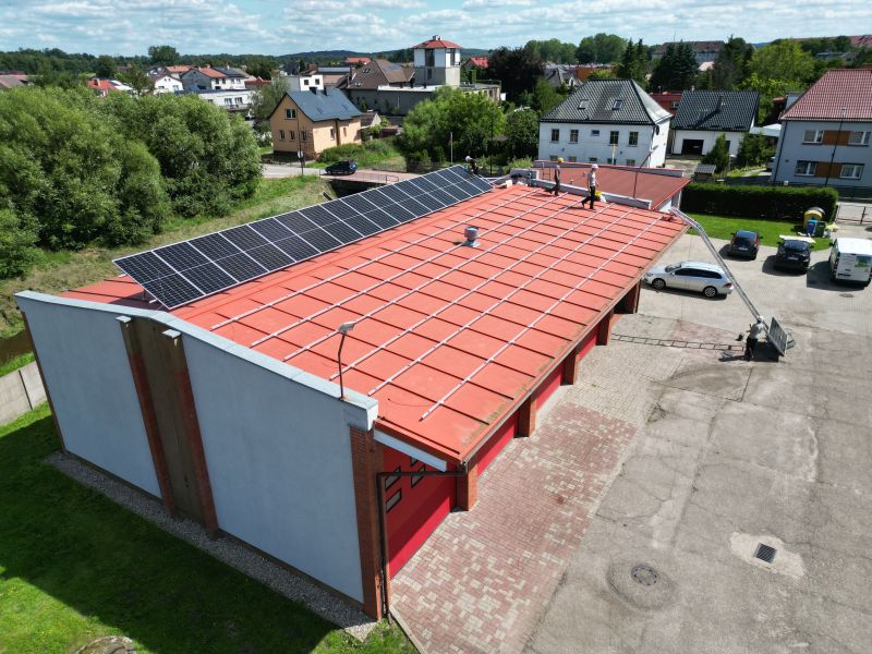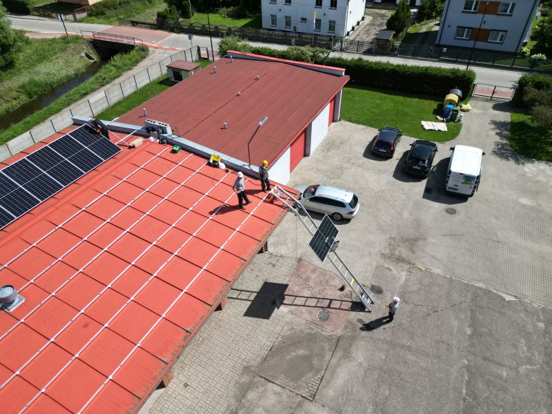 Z dnia na dzień na dachu garażu Komendy Powiatowej PSP w Białogardzie pojawia się coraz więcej paneli fotowoltaicznych. Prace posuwają się błyskawicznie. Całe zadanie jest realizowane zgodnie z ustalonym harmonogramem. Ostateczne zakończenie prac planowane jest na koniec września. Warto podkreślić że planowana inwestycja pozwoli zredukować opłaty związane z użyciem energii elektrycznej oraz pozytywnie wpłynie na środowisko naturalne. Ten innowacyjny projekt nie tylko dąży do osiągnięcia korzyści finansowych, lecz również pokazuje jak ważne jest dbanie o ekologię i korzystanie z dóbr jakie daje nam środowisko naturalne.
