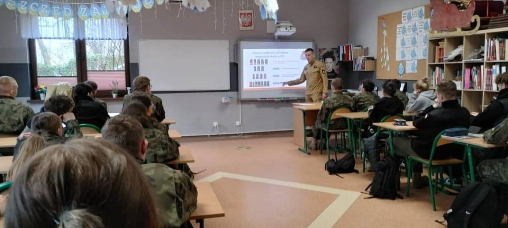 Strażacy KP PSP w Białogardzie aktywnie angażowali się także w wizyty w szkołach, gdzie przeprowadzili zajęcia edukacyjne. W ramach tych spotkań młodzieży, która stoi przed wyborem szkoły strażacy zaprezentowali „Zawód Strażaka” zachęcając do wyboru szkół pożarniczych. Omówiono szczegółową charakterystykę tych szkół przedstawiając programy nauczania, możliwości rozwoju zawodowego oraz wymagania stawiane przyszłym kandydatom. Dzięki temu młodzież miała okazję zapoznać się z różnymi ścieżkami kariery w służbach ratowniczych oraz zdobyć cenne informacje na temat kształcenia w tym zawodzie. (około 60 uczniów).