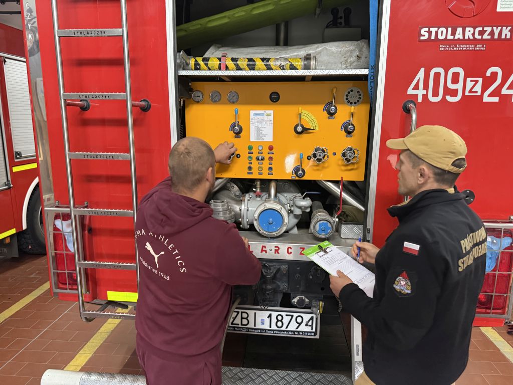 06.10.2025 - W ostatnich dniach funkcjonariusze z Wydziału Operacyjno-Szkoleniowego oraz Samodzielnego Stanowiska ds. Kwatermistrzowsko-Technicznych przeprowadzili okresowe przeglądy techniczne w JRG Białogard oraz w jednostkach OSP włączonych do KSRG z terenu powiatu białogardzkiego.