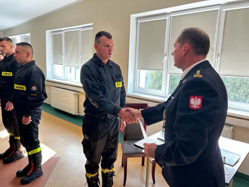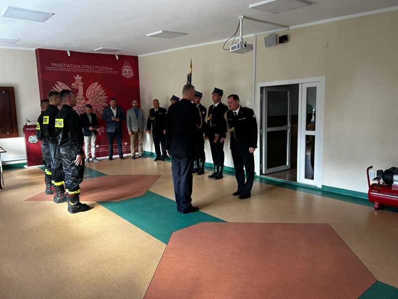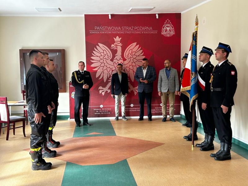 Komendant Powiatowy PSP w Białogardzie pogratulował nowo przyjętym strażakom i podkreślił jak ważna i odpowiedzialna jest to służba.