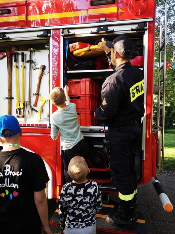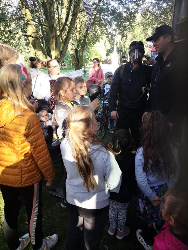Przybyli mieszkańcy mogli z bliska zobaczyć i sprawdzić jak wyglądają narzędzia używane podczas działań oraz posłuchać na czym polega ich praca i jak funkcjonuje system ochrony przeciwpożarowej. Działania Strażaków wywołały wiele uśmiechów i zadowolenia szczególnie wśród dzieci.