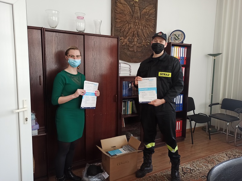 Strażacy rozpoczęli kolportaż ulotek informacyjnych na temat profilaktyki oraz szczepień przeciwko COVID-19