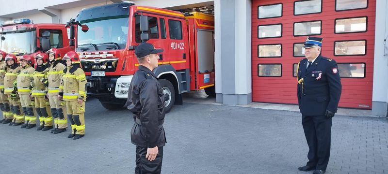 W Komendzie Powiatowej Państwowej Straży Pożarnej w Białogardzie punktualnie o godzinie 8:00 przeprowadzono uroczystą zmianę służby, którą poprowadził zastępca Komendanta Powiatowego bryg. mgr inż. Jacek Twardoń.