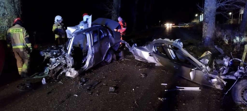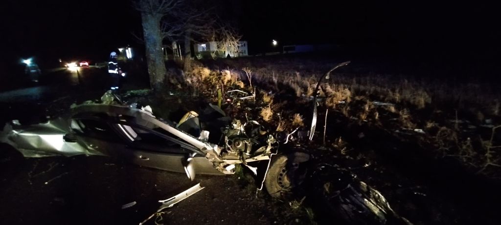 06.01.2024 o godzinie 19:29 do Dyżurnego Stanowiska Kierowania KP PSP w Białogardzie wpłynęło zgłoszenie o pojeździe osobowym, który uderzył w drzewo w miejscowości Tychowo.