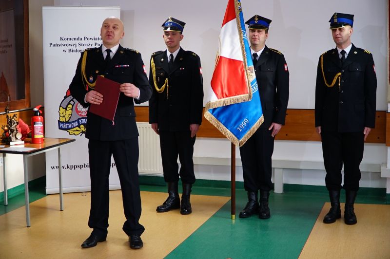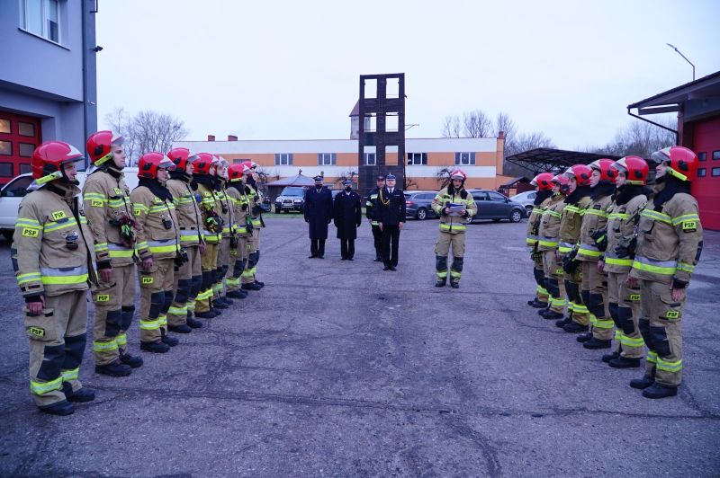 31 stycznia 2022 roku w siedzibie Komendy Powiatowej Państwowej Straży Pożarnej w Białogardzie odbyło się uroczyste pożegnanie odchodzącego na zaopatrzenie emerytalne bryg. mgr inż. Przemysława Zawadzkiego, zajmującego stanowisko Dowódcy Jednostki Ratowniczo – Gaśniczej. Służbę na tym stanowisku pełnił od 14 lat. Swoją karierę zawodową rozpoczął od nauki w Szkole Aspirantów w Poznaniu w 1995 roku. Pracę zawodową i służbę w szeregach Ochotniczej Straży Pożarnej traktował bardzo poważnie, zawsze realizując zalożone cele. Tym samym przez 28 lat pracy dał się poznać jako osoba sumienna i dokładnie wykonująca swoje obowiązki. I dlatego też był wielokrotnie wyróżniany nagrodami przez przełożonych. Odznaczony między innymi: Srebrną Odznaką Zasłużonego dla Ochrony Przeciwpożarowej, Brązowym Medalem za Długoletnią Służbę, Srebrnym Medalem za Zasługi dla Pożarnictwa.