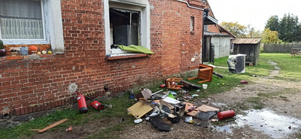 W dniu 02.11.2023 o godzinie 11:05 Dyżurny Stanowiska Kierowania odebrał zgłoszenie o wybuchu w mieszkaniu w miejscowości Sadkowo, gmina Tychowo Na miejsce zostało skierowanych 7 zastępów Straży Pożarnej z terenu powiatu.