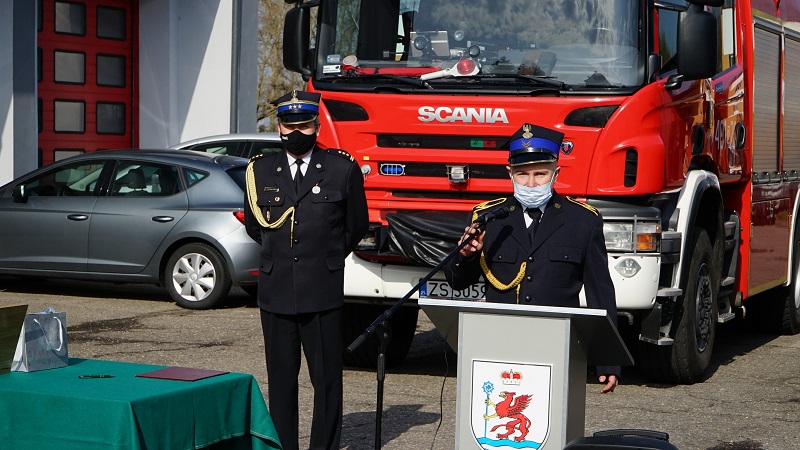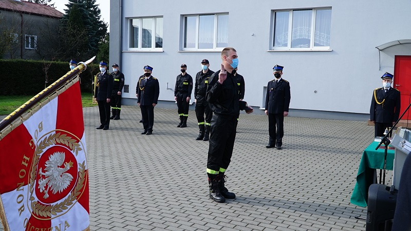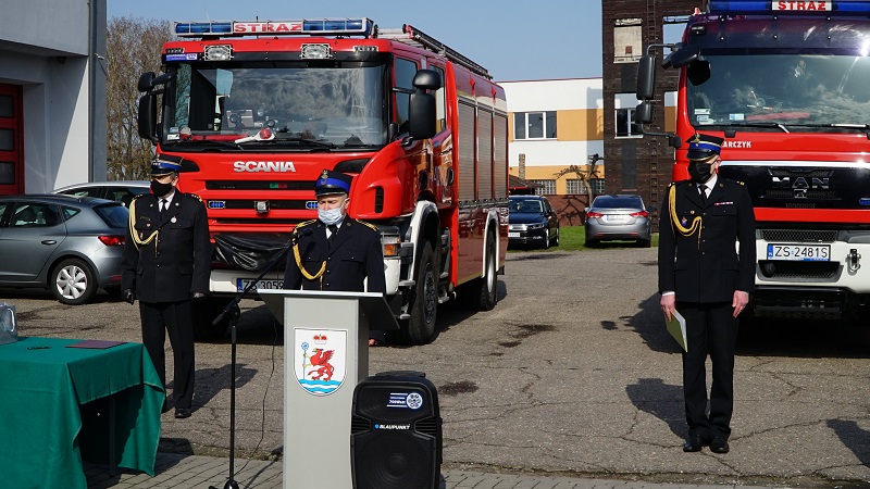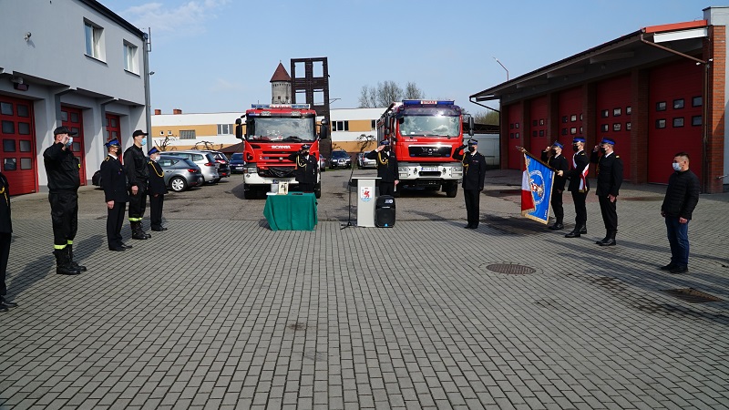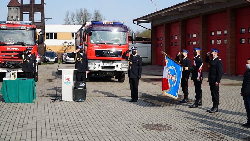 19 kwietnia 2021 roku w Komendzie Powiatowej PSP w Białogardzie odbyła się uroczysta zbiórka podczas której miała miejsce ceremonia składania ślubowania przez strażaka Państwowej Straży Pożarnej oraz pożegnanie ze służbą strażaka udającego się na zaopatrzenie emerytalne. W szeregi białogardzkich pożarników wstąpił strażak Michał Biskot składając ślubowanie, które odebrał Komendant Powiatowy PSP w Białogardzie st. bryg. Jacek Szpuntowicz. Strażak od tej chwili oficjalnie rozpoczął służbę przygotowawczą w Jednostce Ratowniczo-Gaśniczej KP PSP w Białogardzie. Po 25 latach służby na zasłużoną emeryturę udał się starszy ogniomistrz Adam Krzyżak. Oba wydarzenia spinają klamrą przebieg strażackiej służby i jak zaznaczył w przemówieniu Komendant Powiatowy PSP w Białogardzie są dwoma najważniejszymi wydarzeniami w życiu zawodowym strażaka. W uroczystości zorganizowanej w obostrzeniach wynikających z panującej pandemii uczestniczyli przełożeni strażaka, współpracownicy i weterani służby pożarniczej.