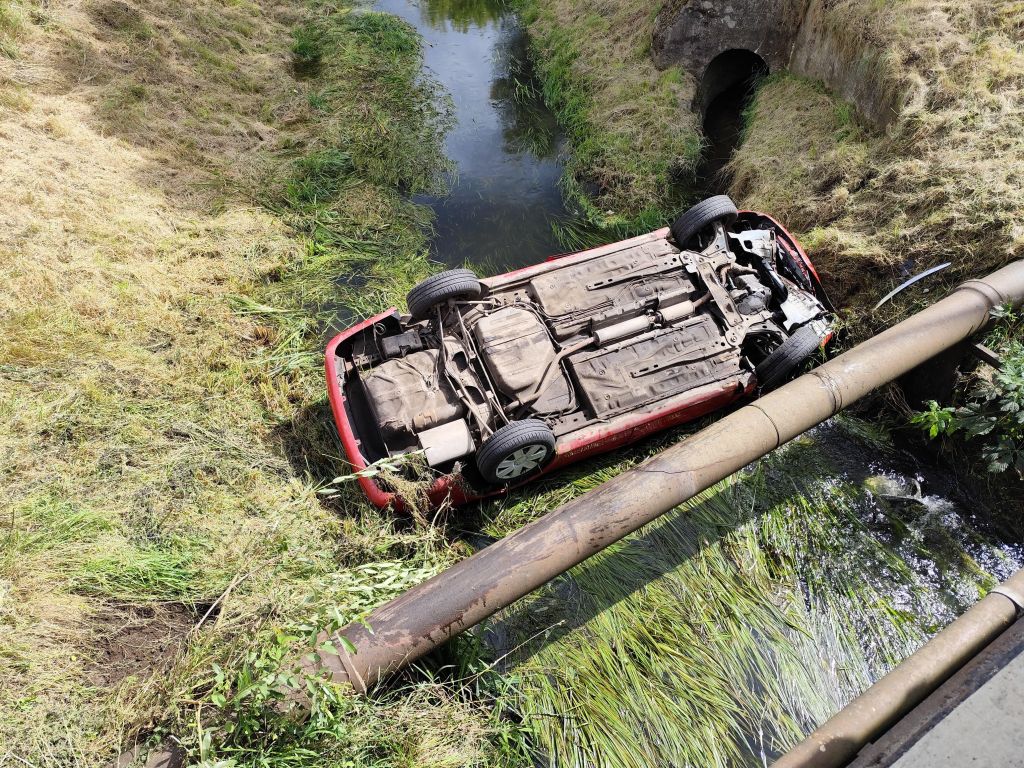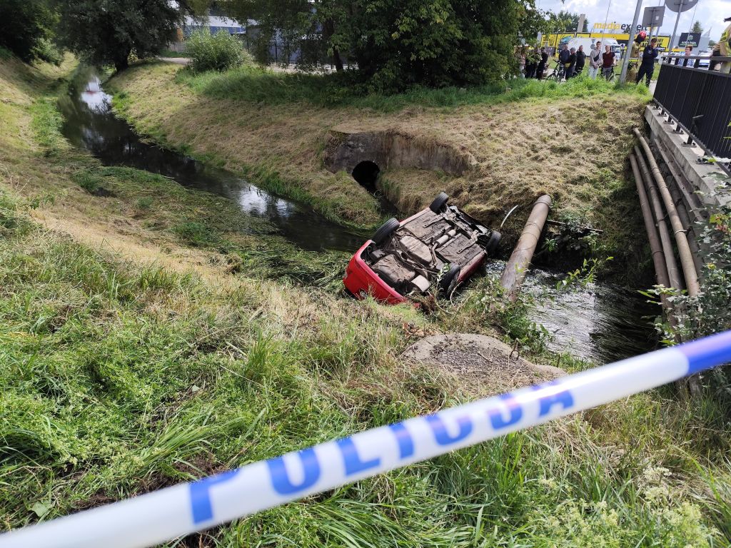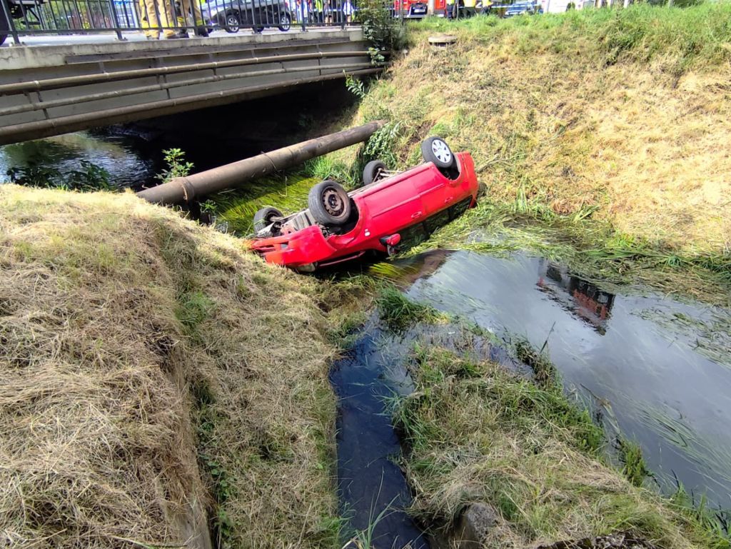 Wypadek drogowy - pojazd w Kanale Ulgi w Białogardzie