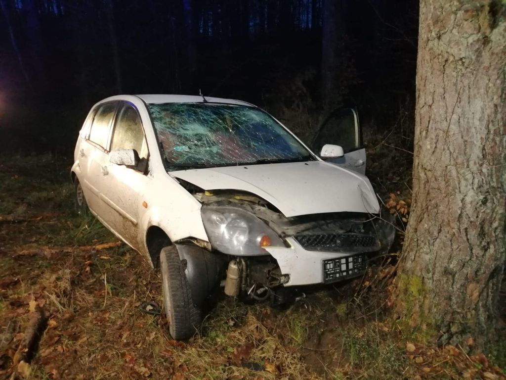 Strażacy po przybyciu na miejsce, zabezpieczyli teren i przystąpili do natychmiastowego rozpoznania sytuacji gdzie stwierdzono, że samochód osobowy uległ zderzeniu z drzewem na drodze leśnej.