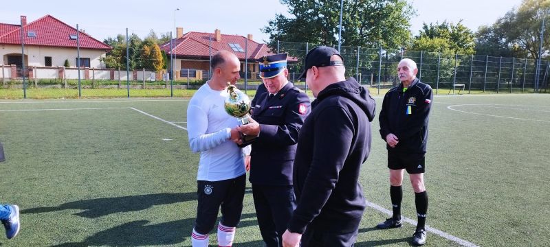 Puchary wręczył Komendant Powiatowy Państwowej Straży Pożarnej w Białogardzie st. bryg. Dariusz Szperlak, który również jest Trenerem Reprezentacji Piłki Nożnej Strażaków Województwa Zachodniopomorskiego.