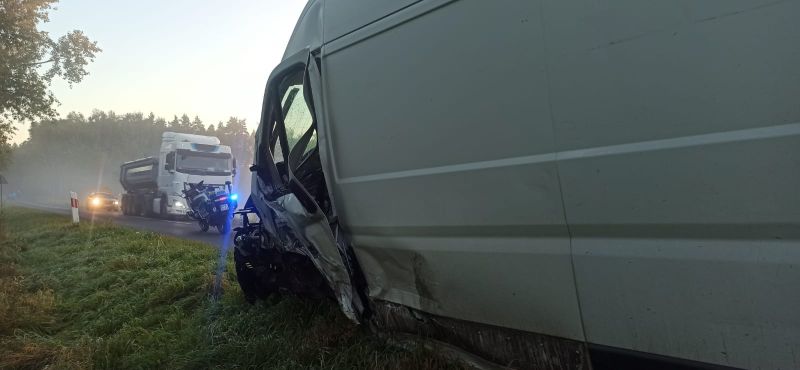 25.09.2023 o godzinie 06:54 Dyżurny Stanowiska Kierowania odebrał zgłoszenie o zderzeniu czołowym pojazdu osobowego z dostawczym.