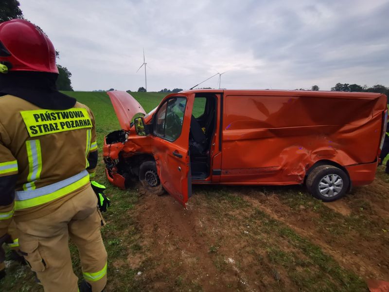 Zderzenie auta osobowego z pojazdem dostawczym w okolicy Gruszewa