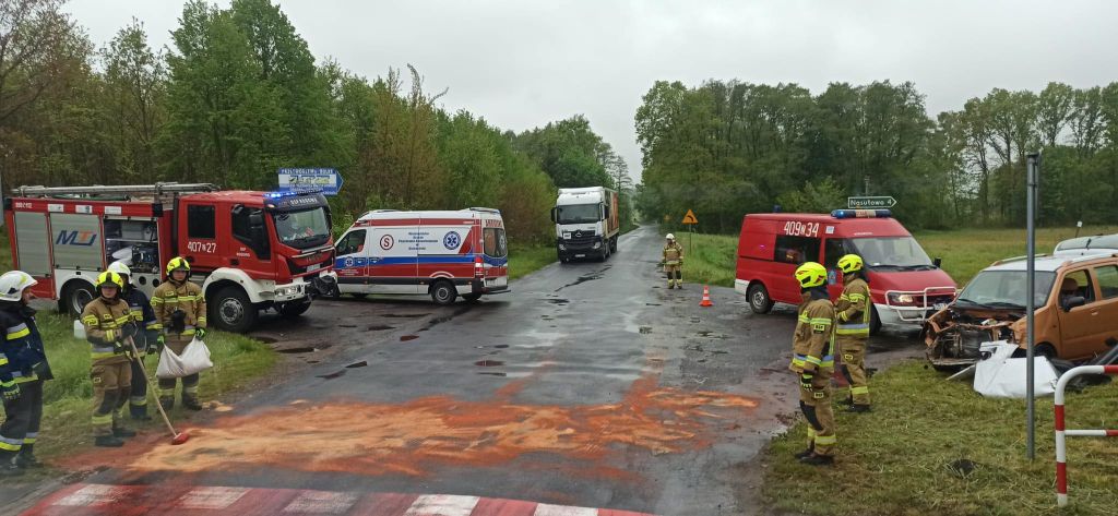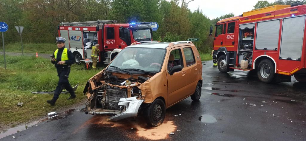 Zderzenie dwóch samochodów w miejscowości Łęczno