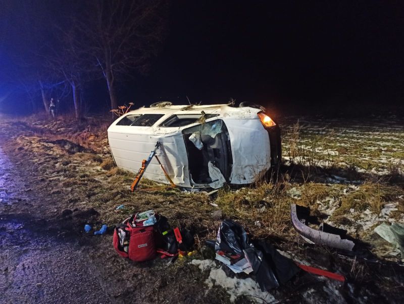 30.12.2021 o godzinie 16:38 Dyżurny Stanowiska Kierowania odebrał zgłoszenie o zderzeniu pojazdu osobowego z jeleniem w okolicy miejscowości Pustkowo. Pojazd leży na poboczu drogi, droga przejezdna, jest osoba poszkodowana, brak wycieków i zadymienia. Na miejsce błyskawicznie udały się zastępy Straży Pożarnej z JRG Białogard oraz OSP Kościernica. Strażacy po dojeździe na miejsce zdarzenia ustalili, że pod wskazaną lokalizacją doszło do zderzenia pojazdu osobowego ze zwierzyną leśną. Pojazd jest poza drogą i leży na boku. W środku jest osoba poszkodowana, przytomna. Działania zastępów polegały na zabezpieczeniu i oświetleniu miejsca zdarzenia. Następnie strażacy ustabilizowali pojazd przy pomocy specjalistycznych podpór i ewakuowali osobę poszkodowaną na zewnątrz. Odłączono akumulator i postawiono pojazd na koła. Kierujący pojazdem został przekazany Zespołowi Ratownictwa Medycznego. Na czas działań droga była zablokowana. Przypuszczalną przyczyną zdarzenia było zderzenie ze zwierzyną leśną. Straty w pojeździe oszacowano na 30 tys. zł. Strażacy działania zakończyli o godzinie 18:37 i udali się do bazy.