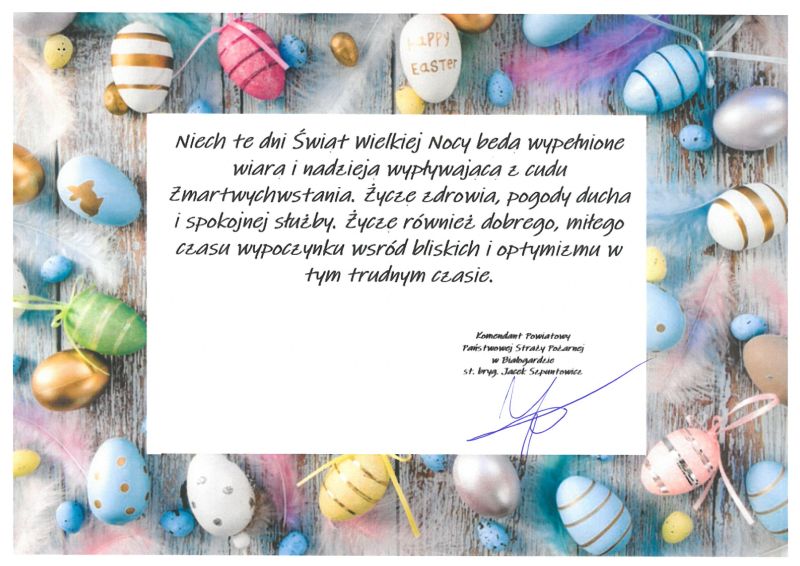 Życzenia świąteczne Komendanta Powiatowego PSP w Białogardzie