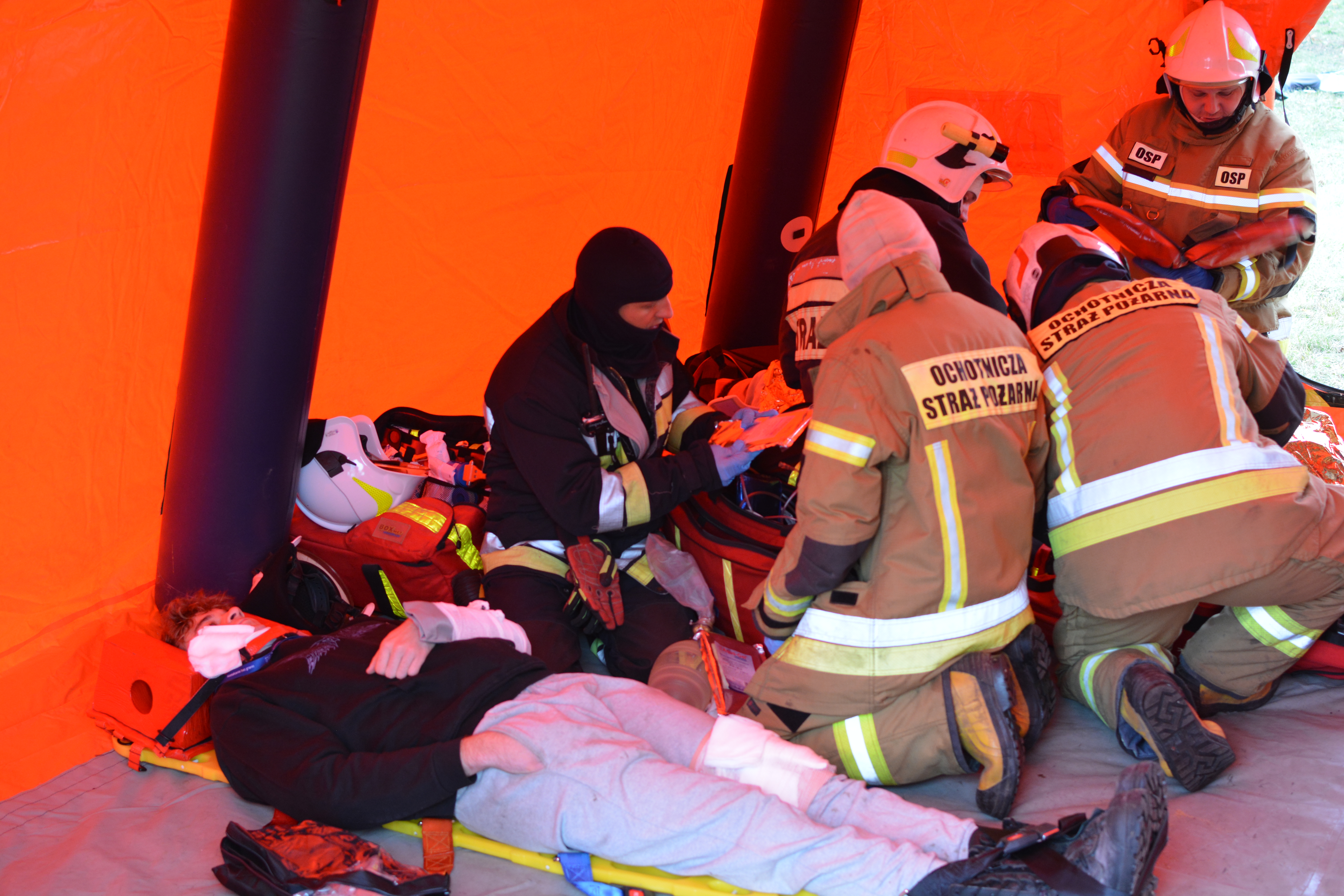 Scenariusz ćwiczeń zakładał, że zderzeniu uległy samochód osobowy i autobus. W obu pojazdach znajdowało się łącznie kilkanaście osób poszkodowanych. Zadaniem strażaków było dotarcie do osób poszkodowanych, ewakuacja ich z uszkodzonych pojazdów oraz udzielenie im kwalifikowanej pierwszej pomocy. Na miejscu zdarzenia zorganizowano punkt medyczny, w którym strażacy sprawdzali swoje umiejętności w zakresie resuscytacji krążeniowo-oddechowej, stabilizacji poszkodowanych, opatrywania ran, a także używania sprzętu medycznego, takiego jak defibrylatory automatyczne (AED).