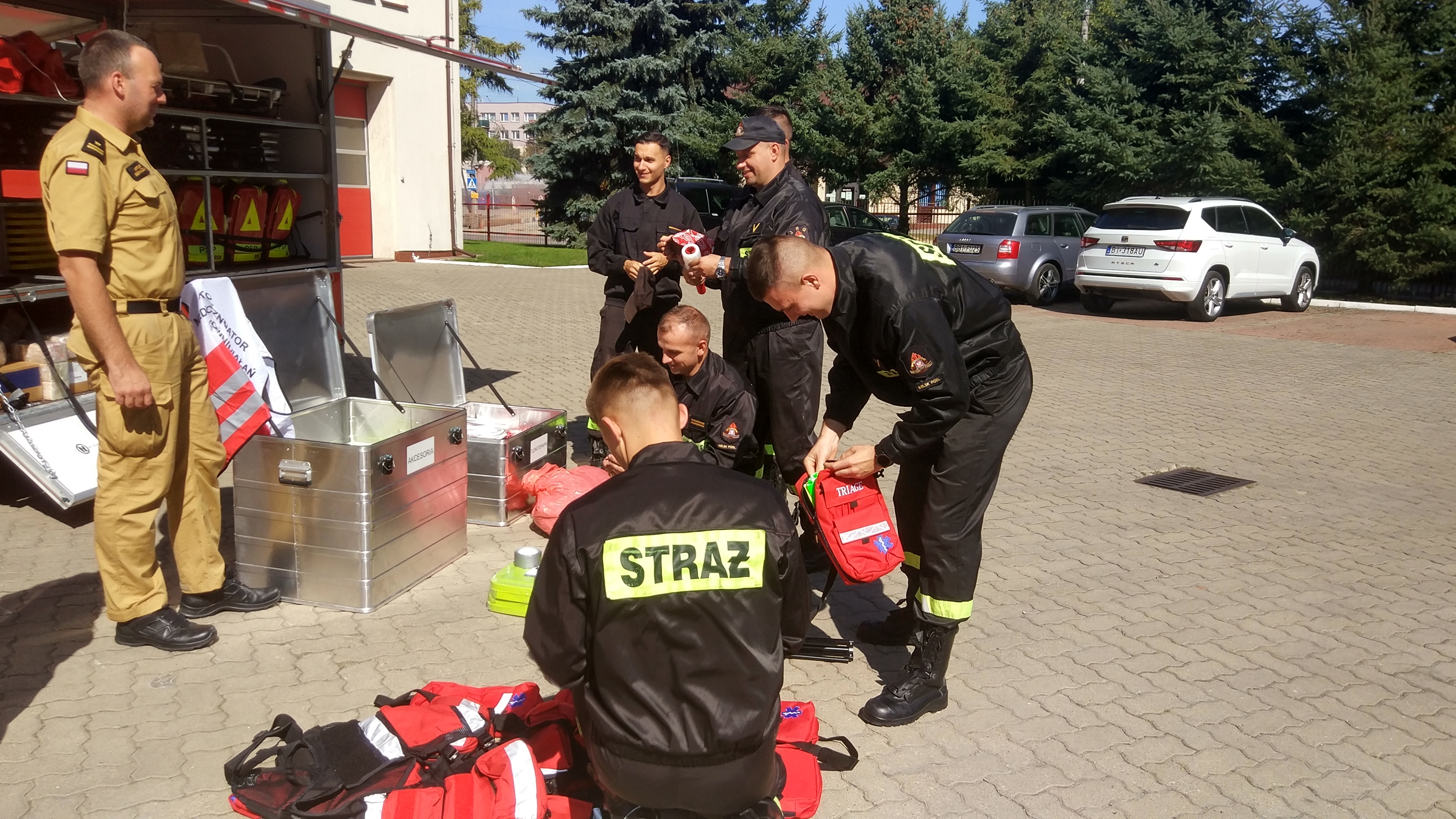 8 września 2021 r. w Komendzie Powiatowej Państwowej Straży Pożarnej w Bielsku Podlaskim przeprowadzono zajęcia w zakresie organizacji akcji ratowniczo-gaśniczych z dużą ilością osób poszkodowanych (wypadek masowy). Zajęcia prowadził mł.bryg. Artur Bernaziuk z Komendy Wojewódzkiej PSP w Białymstoku – wojewódzki koordynator ratownictwa medycznego PSP. W trakcie zajęć zaprezentowana została Mobilna Baza Sprzętu Medycznego będąca na wyposażeniu Komendy Wojewódzkiej PSP w Białymstoku. Sprzęt ten dedykowany jest do udzielania pomocy medycznej w wypadkach masowych i zamachach terrorystycznych.