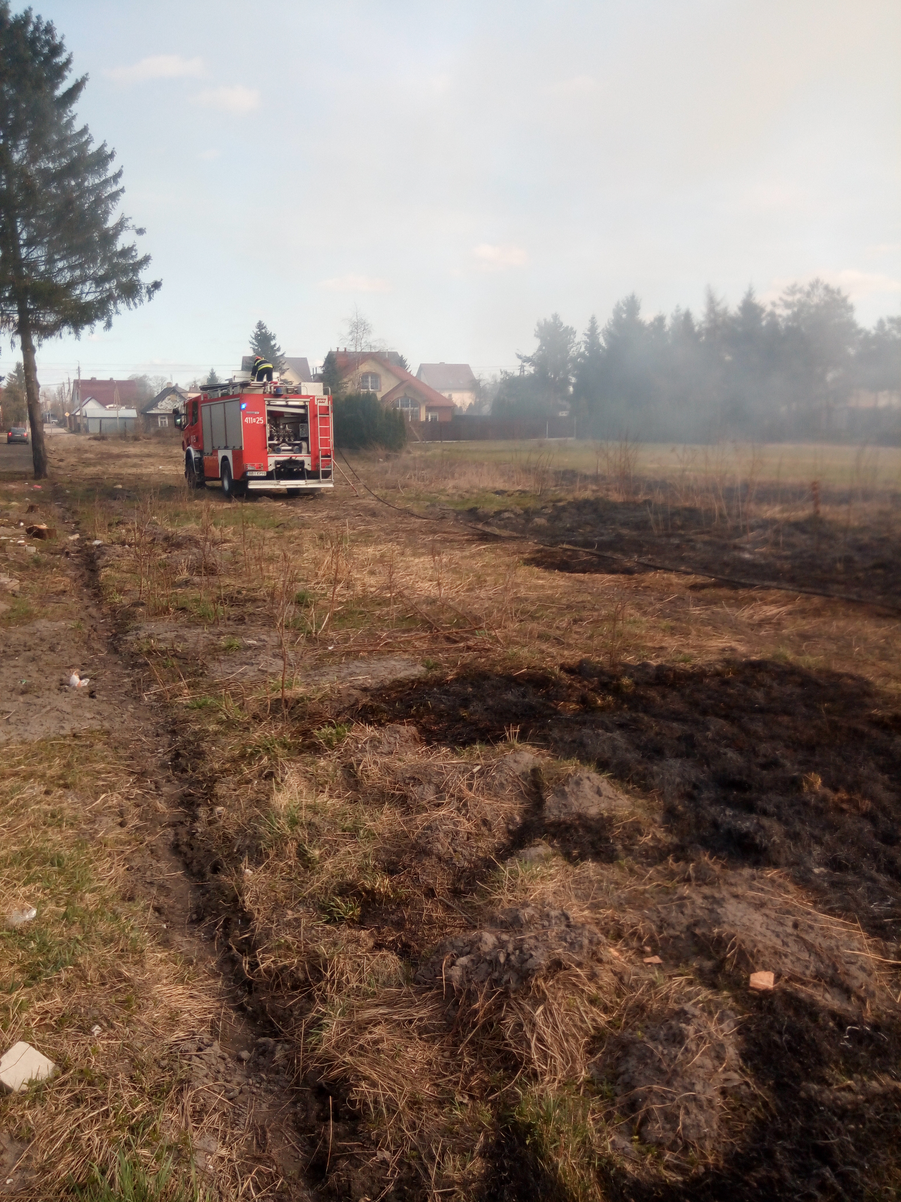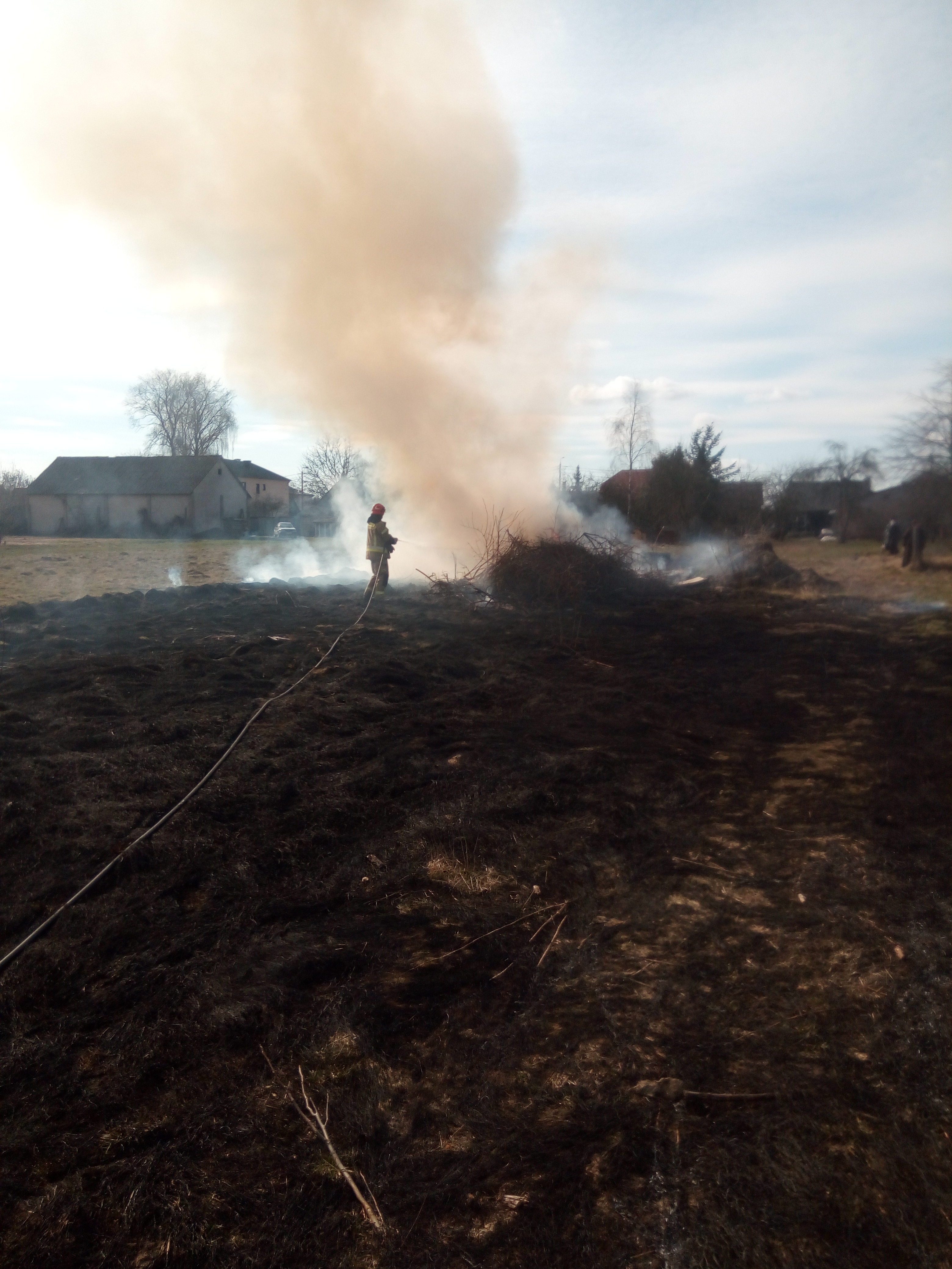 Po przybyciu na miejsce zdarzenia zastępu straży pożarnej stwierdzono, że pali się sucha trawa na powierzchni około 16 tys. m2 oraz sterta gałęzi o wymiarach około 3x8 m. Zagrożone pożarem były znajdujące się w pobliżu 22 metalowe garaże. Strażacy zabezpieczyli miejsce zdarzenia i przystąpili do gaszenia pożaru przy użyciu jednej linii gaśniczej. Dzięki sprawnie przeprowadzonej akcji gaśniczej udało się nie dopuścić do rozprzestrzenienia się pożaru na sąsiadujące zabudowania.