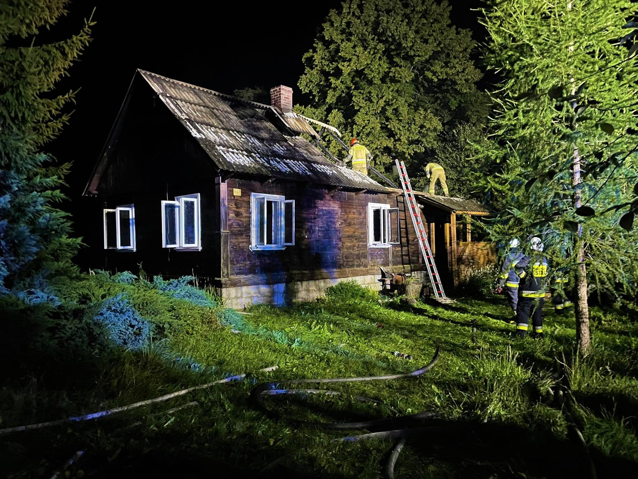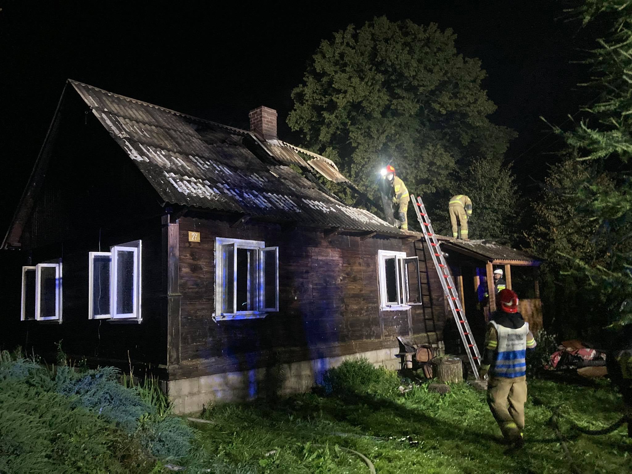 Po przybyciu na miejsce zdarzenia strażacy zastali rozwinięty pożar drewnianego budynku mieszkalnego. Dach budynku częściowo uległ już zawaleniu. Ze wstępnych ustaleń wynikało, że wewnątrz budynku nikt nie powinien przebywać.