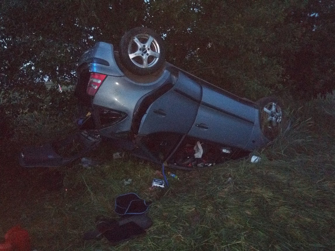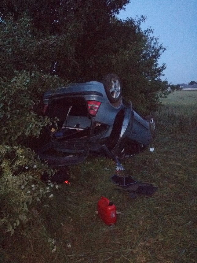 Po przybyciu na miejsce zdarzenia strażacy zastali samochód osobowy marki Mercedes leżący na dachu w przydrożnym rowie. Pod pojazdem znajdował się uwięziony kierowca. Poszkodowany był przytomny.