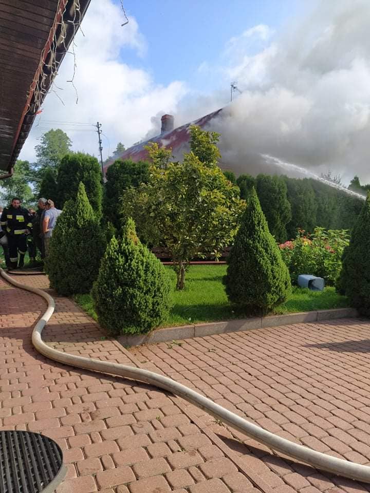Po przybyciu na miejsce zdarzenia kolejnych zastępów straży pożarnej podano dodatkowe prądy wody do wnętrz palącego się budynku.