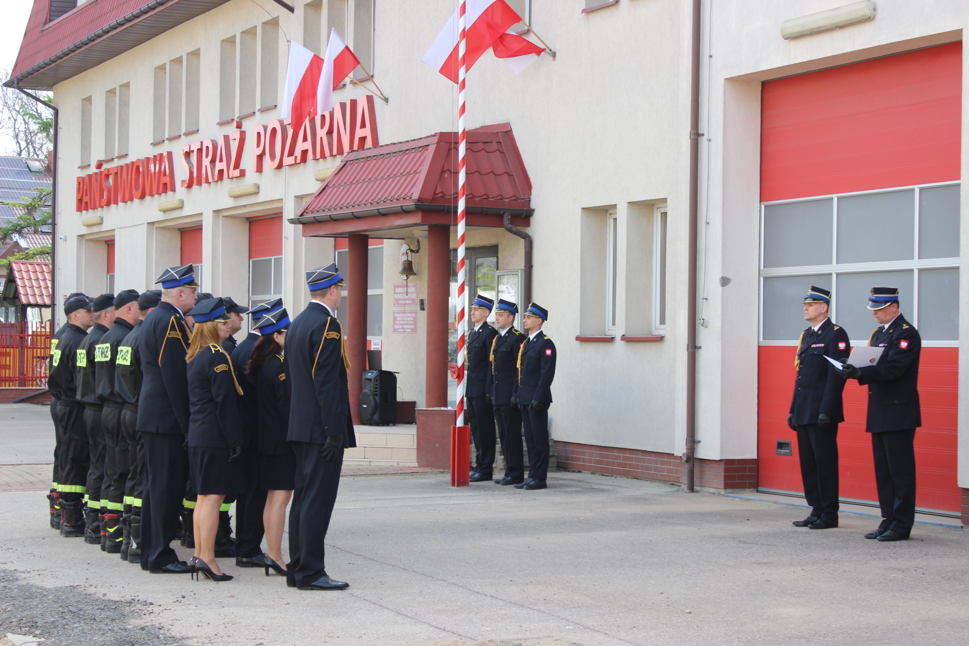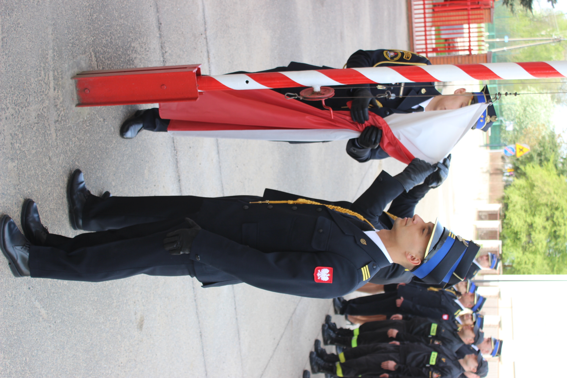 Podczas zbiórki nastąpiło uroczyste podniesienie flagi państwowej na maszt. W uroczystości uczestniczył Komendant Powiatowy PSP w Bielsku Podlaskim mł.bryg. Wojciech Kusznerko wraz z Zastępcą Komendanta Powiatowego PSP w Bielsku Podlaskim bryg. Marcinem Sawickim oraz funkcjonariusze bielskiej komendy.