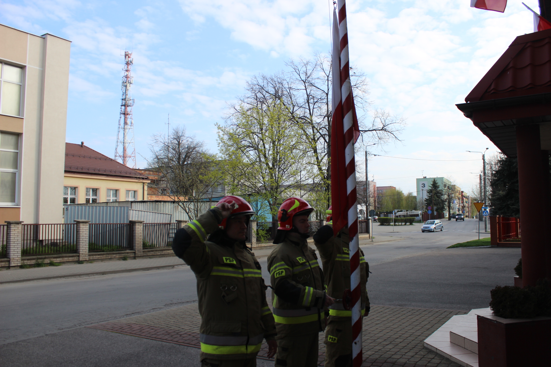 Podczas zmiany służby nastąpiło uroczyste podniesienie flagi państwowej na maszt. W uroczystości uczestniczył Zastępca Komendanta Powiatowego PSP w Bielsku Podlaskim bryg. Marcin Sawicki, Dowódca Jednostki ratowniczo-Gaśniczej bryg. Jerzy Tomczuk oraz dwie zmiany służbowe JRG Bielsk Podlaski.
