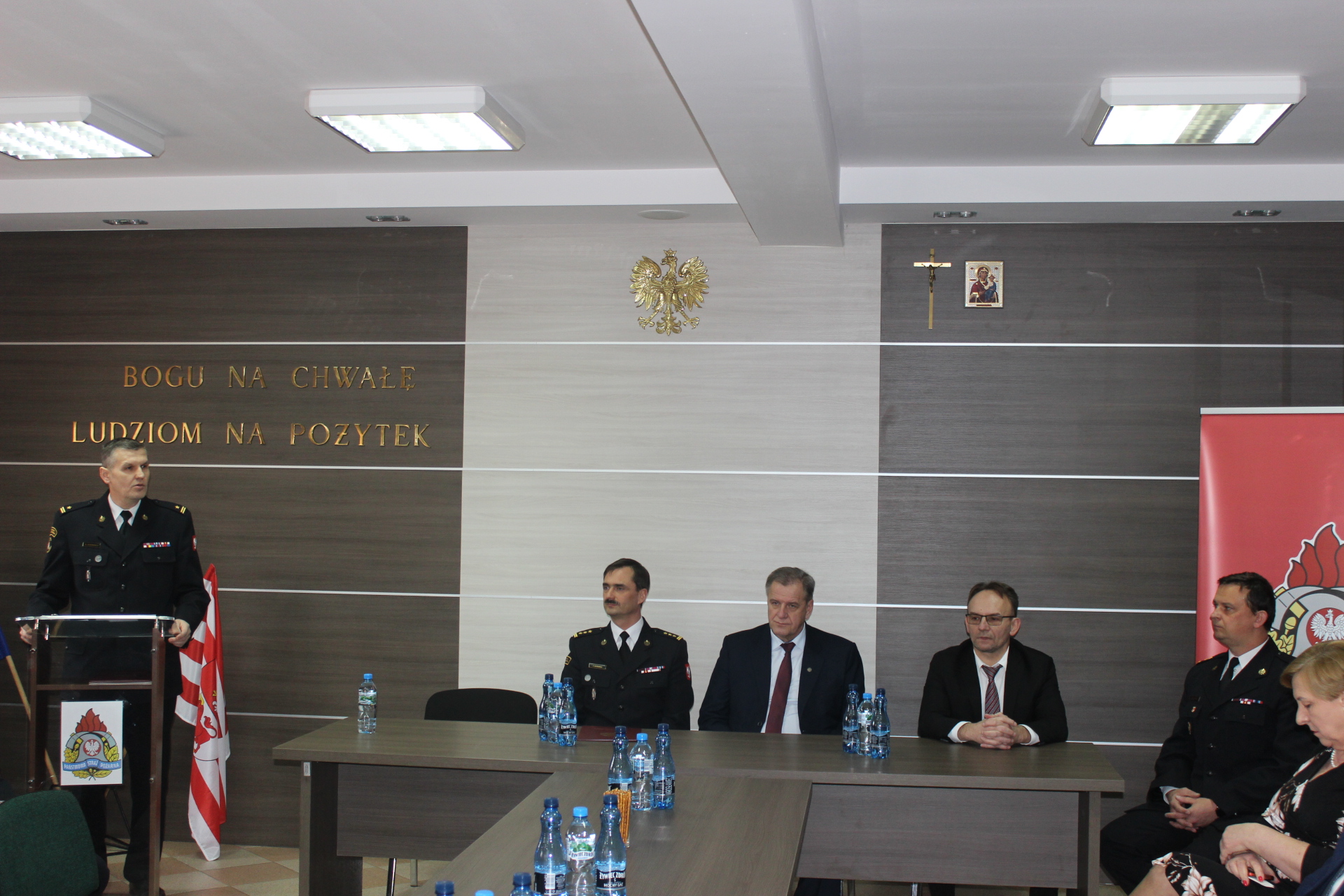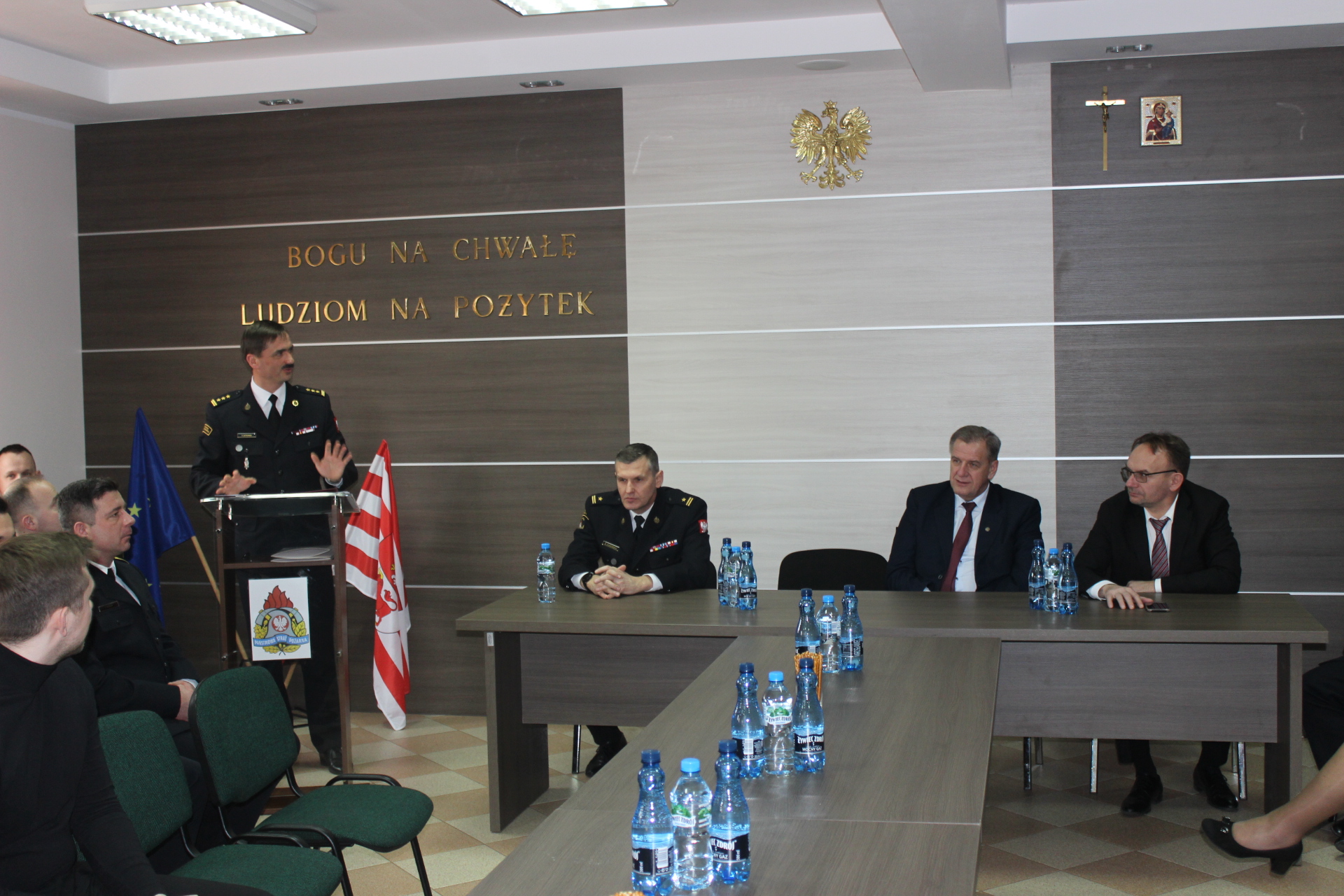 Następnie głos zabrał Zastępca Podlaskiego Komendanta Wojewódzkiego Państwowej Straży Pożarnej – st. bryg. Paweł Ostrowski omawiając działalność ochrony przeciwpożarowej na terenie województwa podlaskiego. W dalszej części narady głos zabrał Starosta Bielski Pan Sławomir Jerzy Snarski dziękując strażakom za działanie na rzecz ochrony przeciwpożarowej.