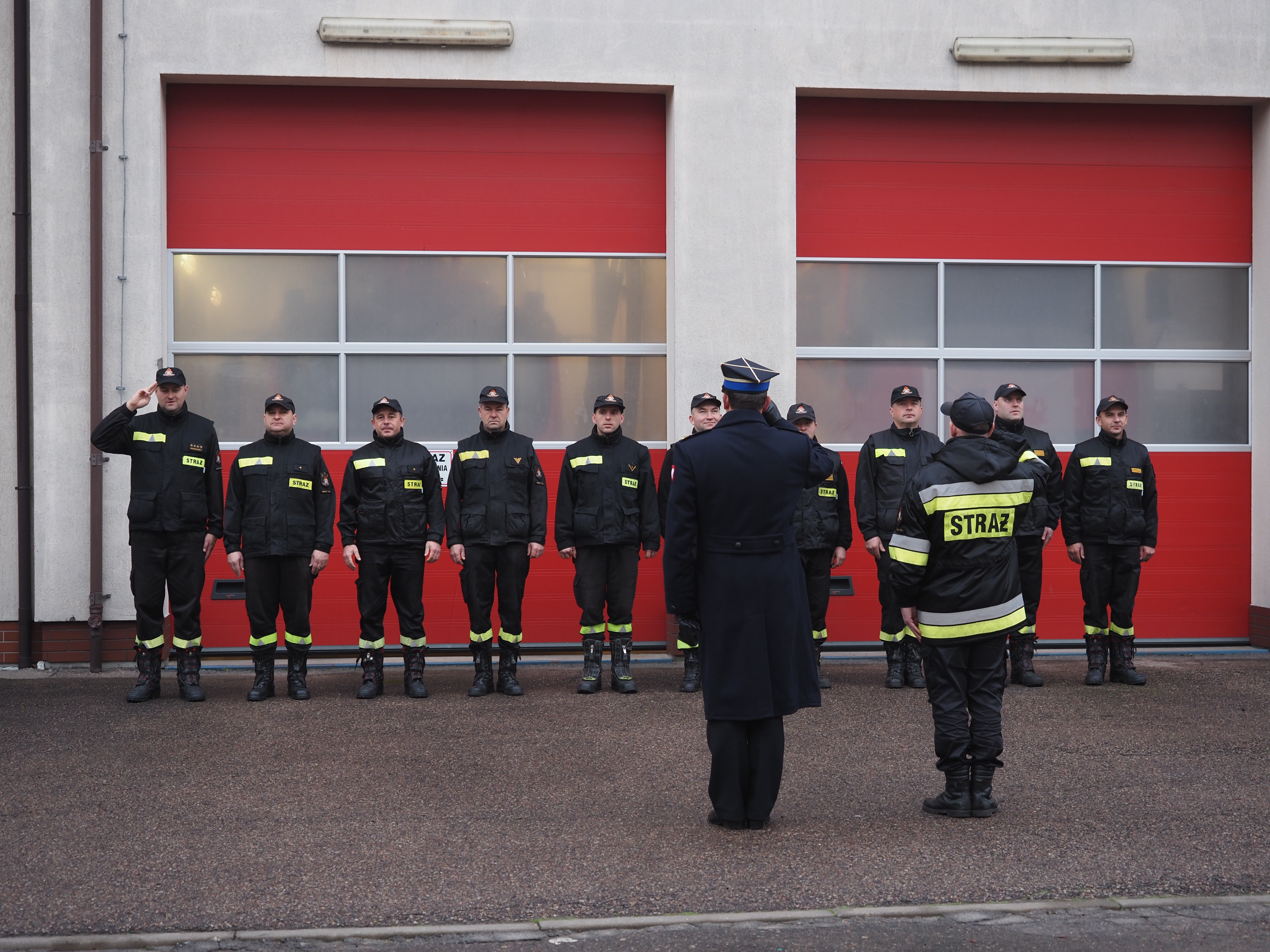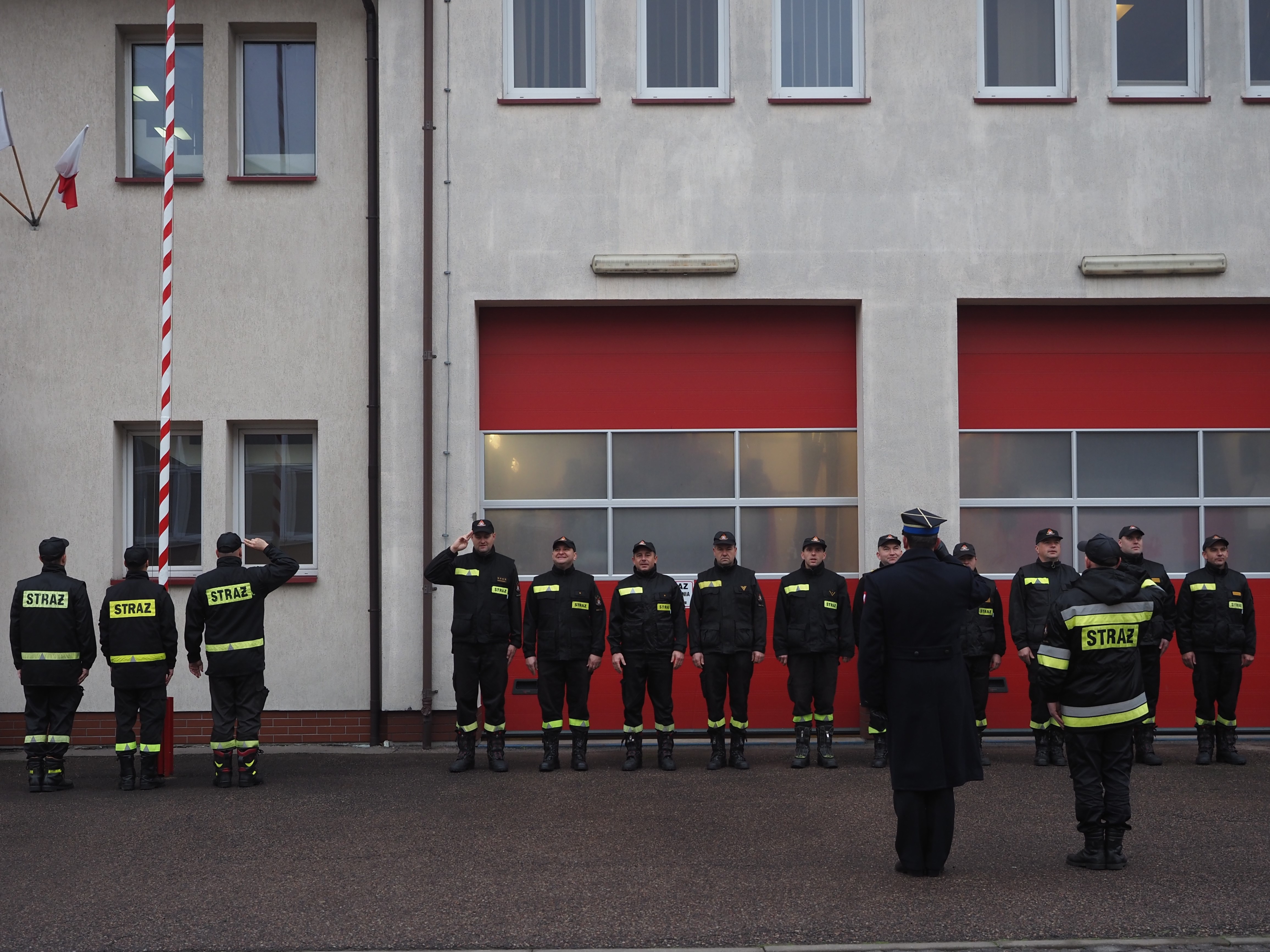 W uroczystej zbiórce udział brali: Zastępca Komendanta Powiatowego PSP w Bielsku Podlaskim bryg. Marcin Sawicki, Zastępca Dowódcy JRG kpt. Igor Strapczuk oraz oraz funkcjonariusze z Jednostki Ratowniczo-Gaśniczej w Bielsku Podlaskim.