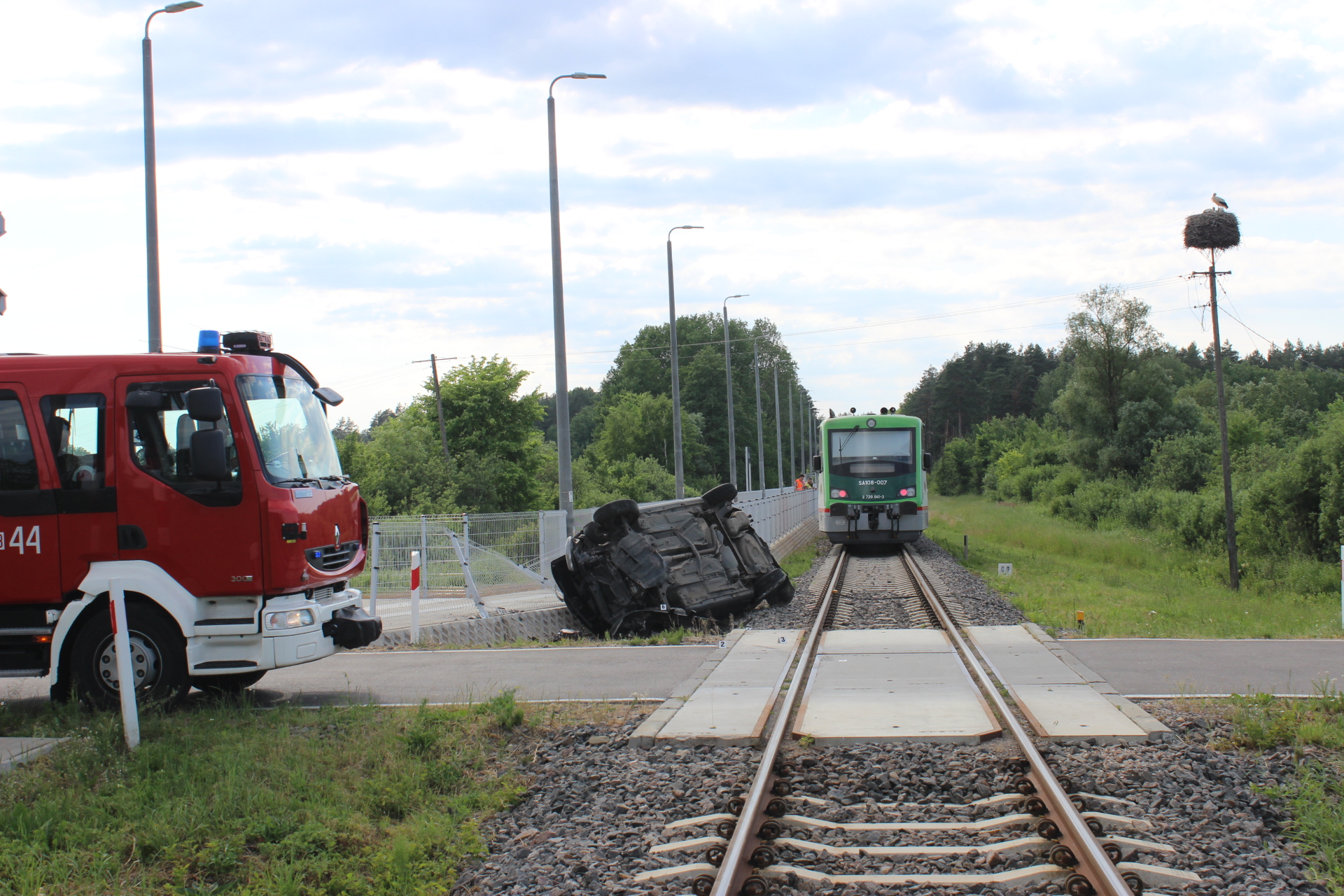 O krok od tragedii na przejeździe kolejowym – samochód osobowy wjechał pod nadjeżdżający szynobus