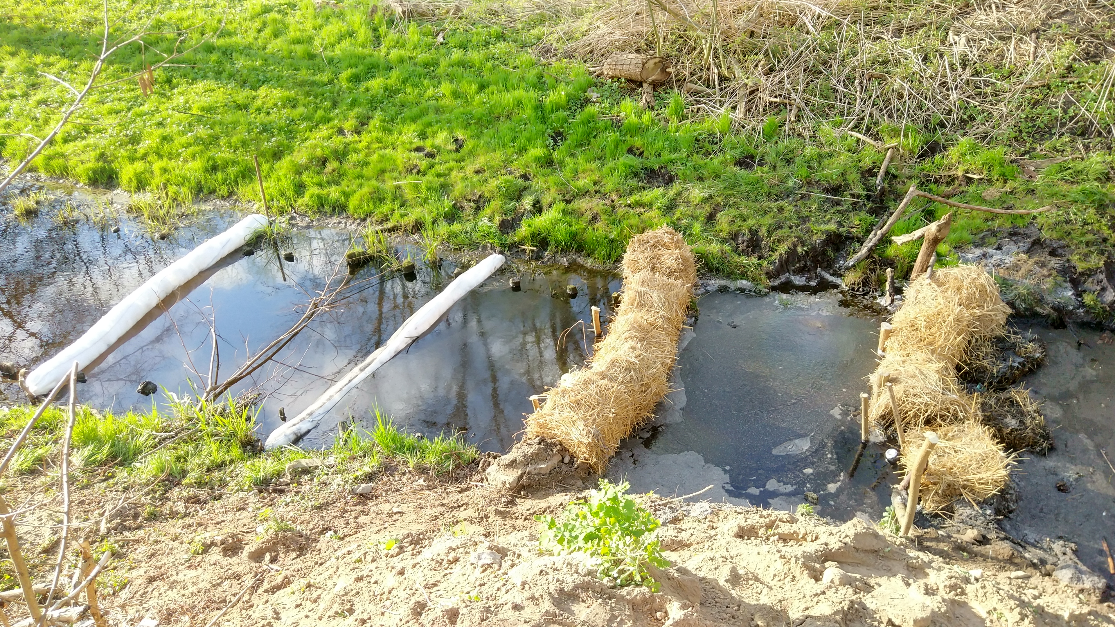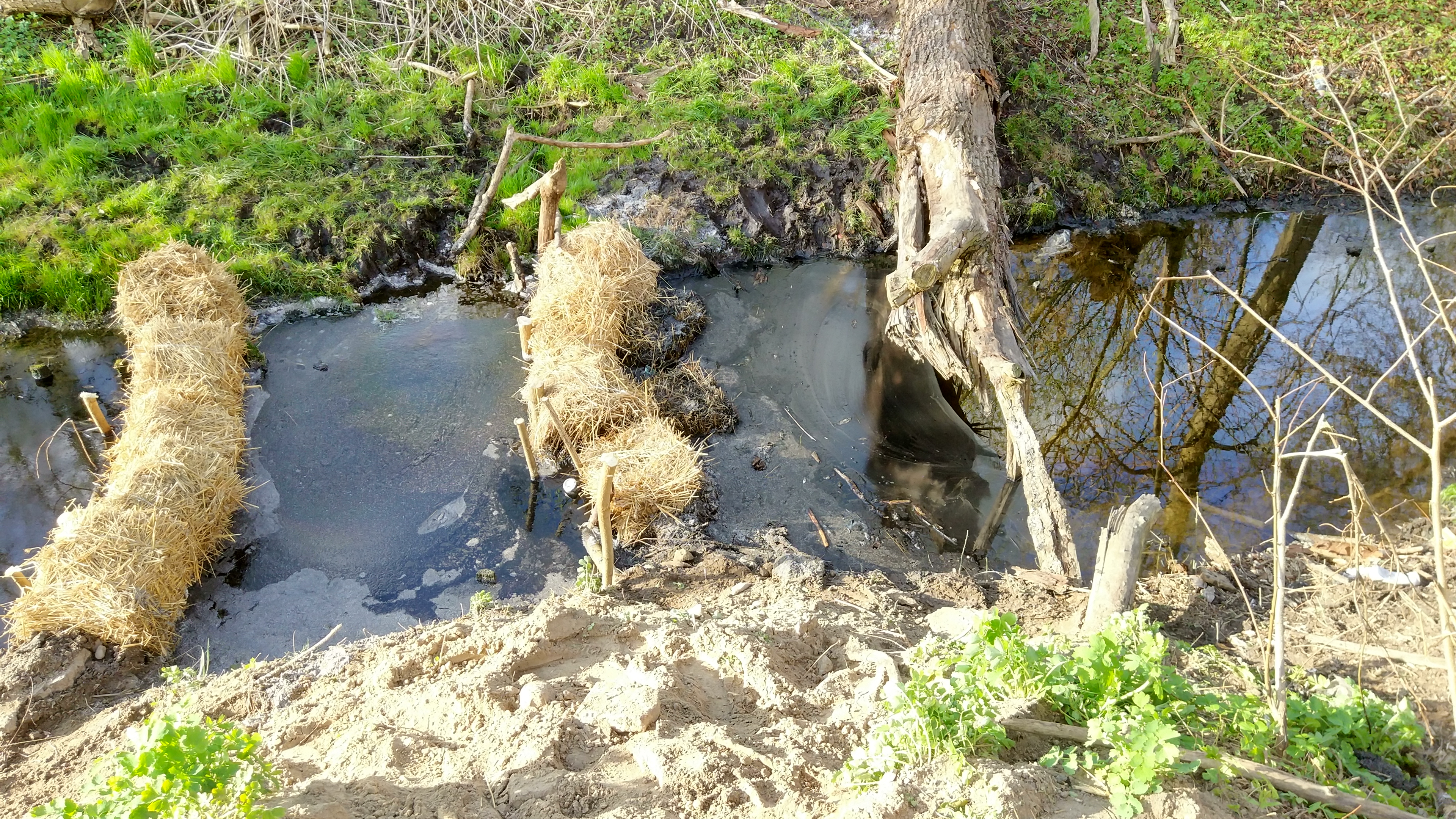 Po przybyciu na miejsce zdarzenia strażacy stwierdzili, że na rzece unosi się plama substancji ropopochodnej o powierzchni około 15 m2. Strażacy zabezpieczyli miejsca zdarzenia, ułożyli zaporę ze słomy w kostkach oraz dwie zapory sorpcyjne w korycie rzeki. Substancję ropopochodną zebrano przy pomocy sorbentu do beczek, pozostałości zneutralizowano przy użyciu dyspergentu.