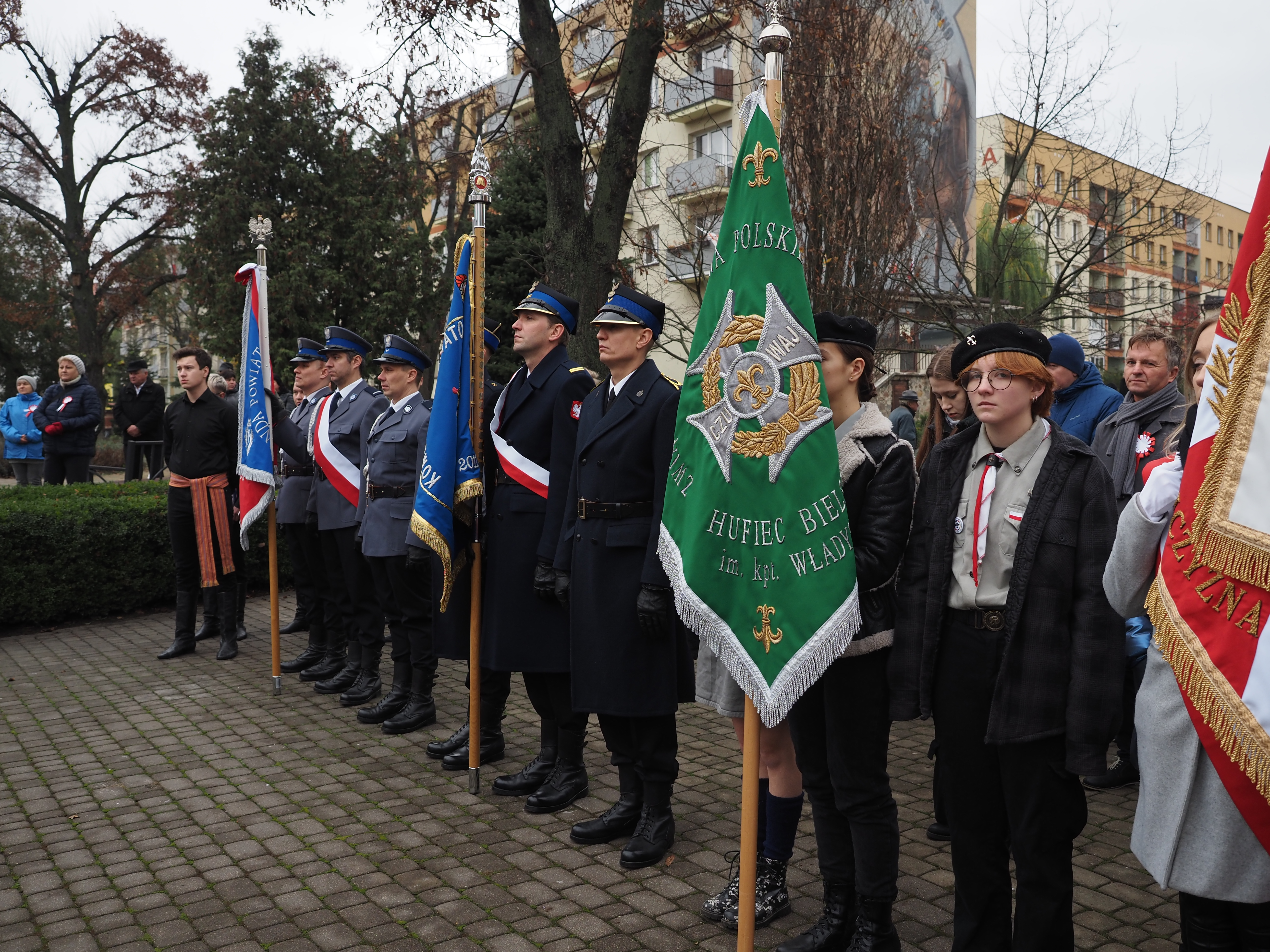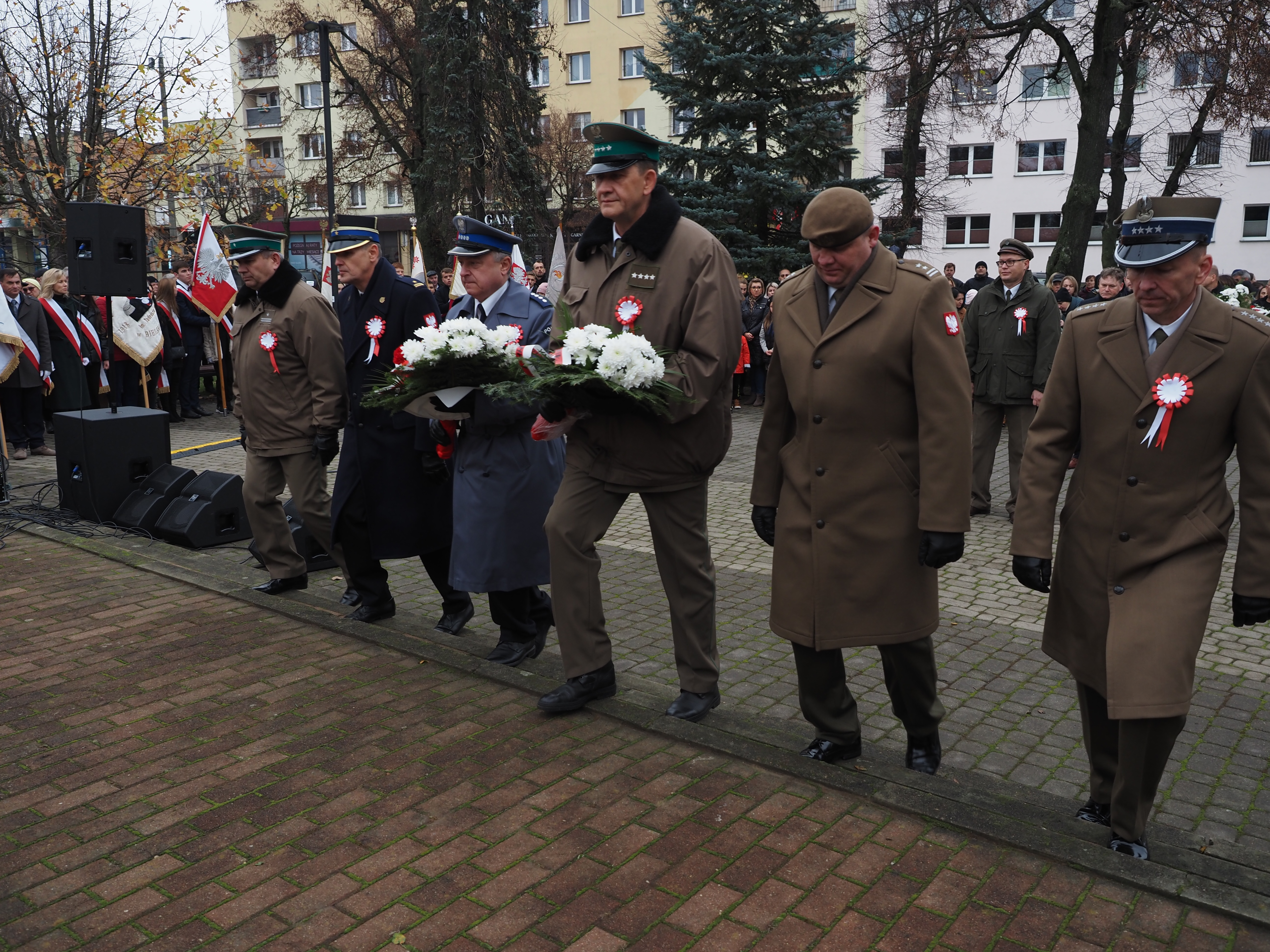 Podczas uroczystości Komendant Powiatowy PSP w Bielsku Podlaskim mł.bryg. Wojciech Kusznerko, wspólnie z przedstawicielami Policji, Straży Granicznej oraz Wojskowego Centrum Rekrutacji, złożyli wiązanki pod Pomnikiem Niepodległości Polski oraz pod tablicą Marszałka J.K. Piłsudskiego.