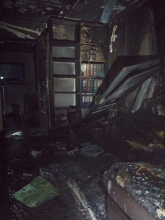 Na miejscu zdarzenia stwierdzono, że pożarem objęty jest budynek biurowy przyległy do murowanego spichlerza oraz stojący na posesji samochód osobowy Volvo. Wewnątrz budynku panowało silne zadymienie.