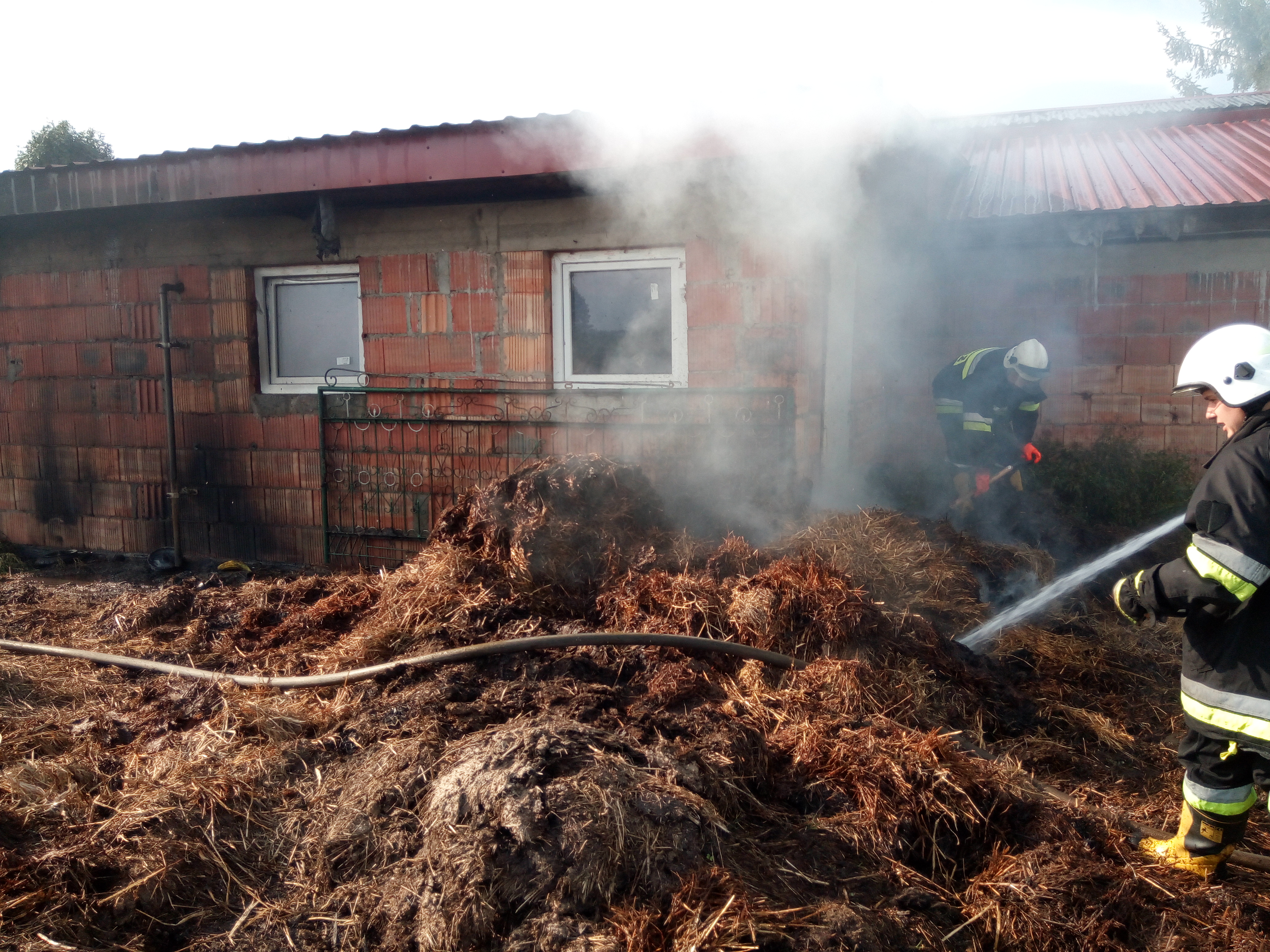 Kiedy strażacy dotarli na miejsce zdarzenia stwierdzono, że pożarem objęte jest pomieszczenie gospodarcze w budynku inwentarskim. Ogień zdołał rozprzestrzenić się na konstrukcję dachu. Właścicielowi udało się wyprowadzić inwentarz na pobliskie pole.