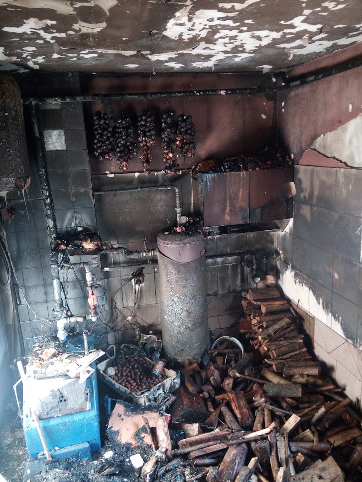 Kiedy ratownicy dotarli na miejsce zdarzenia stwierdzono pożar, murowanego budynku mieszkalnego jednorodzinnego. Mieszkańcy opuścili budynek przed przybyciem straży pożarnej. Pożarem było objęte pomieszczenie kotłowni. Działania strażaków polegały na podaniu jednego prądu wody do palącego się pomieszczenia kotłowni. Po zakończeniu działań gaśniczych przystąpiono do usuwania spalonych elementów wyposażenia kotłowni oraz drewna opałowego.