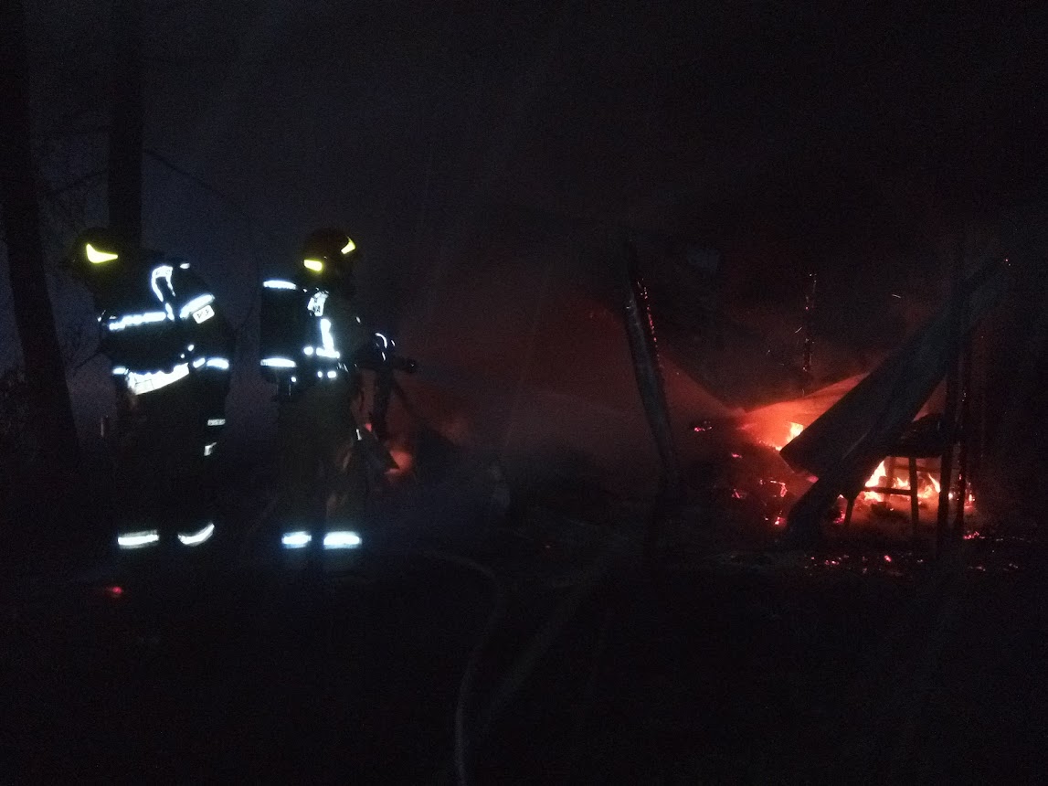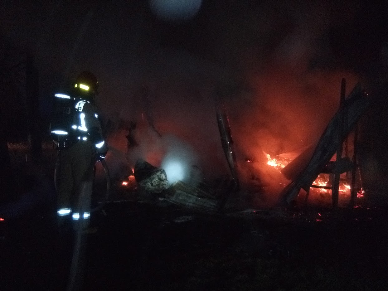 Po przybyciu na miejsce zdarzenia zastępów straży pożarnej zastano w pełni rozwinięty pożar drewnianego domku letniskowego. W chwili powstania pożaru w budynku przebywały 2 osoby (mężczyzna oraz dziecko). Opuścili oni płonący budynek przed przyjazdem zastępów straży pożarnej.