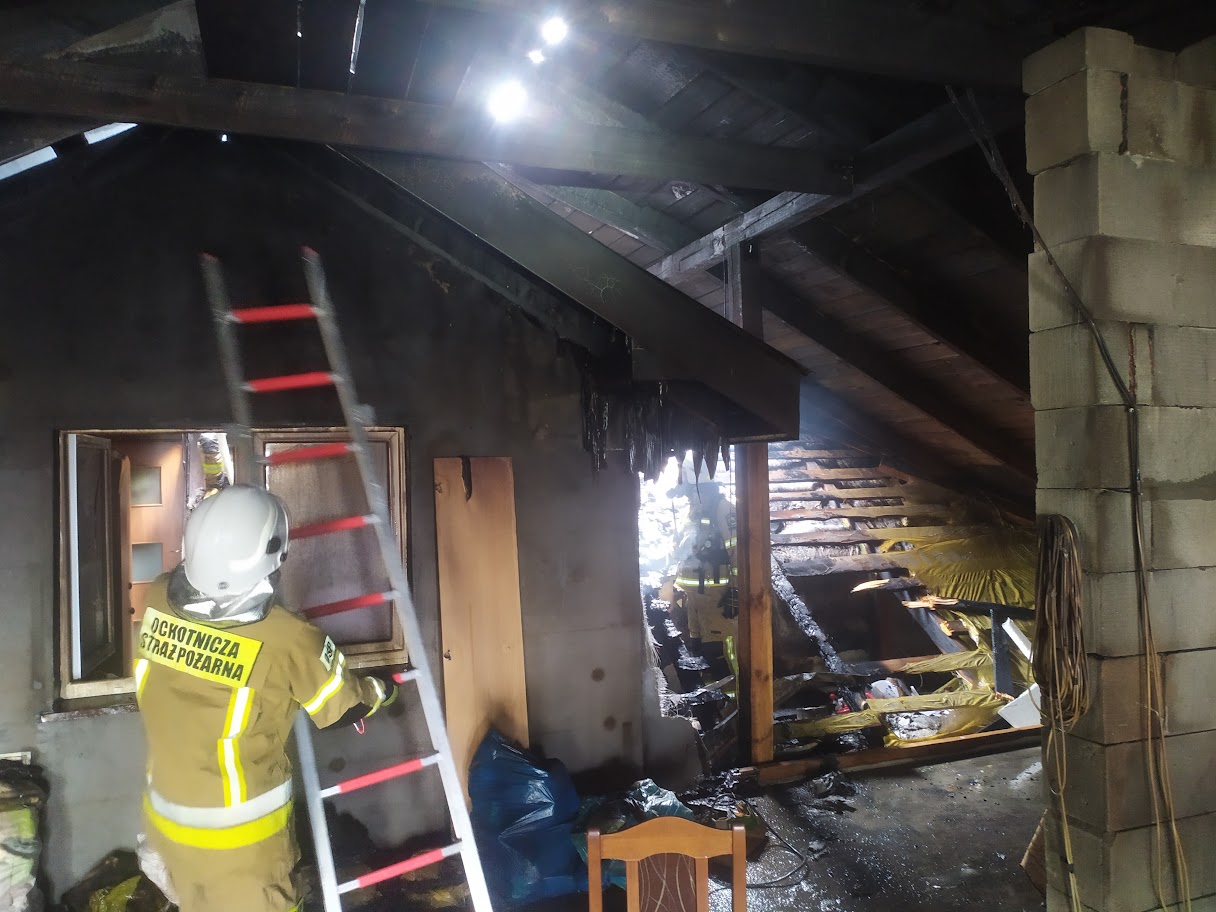 Na miejscu strażacy zastali pożar drewnianej więźby dachowej, stanowiącej konstrukcję wspólną dla połączonych ze sobą budynków. Wszystkim mieszkańcom udało się samodzielnie opuścić płonący budynek – nie odnieśli obrażeń.
