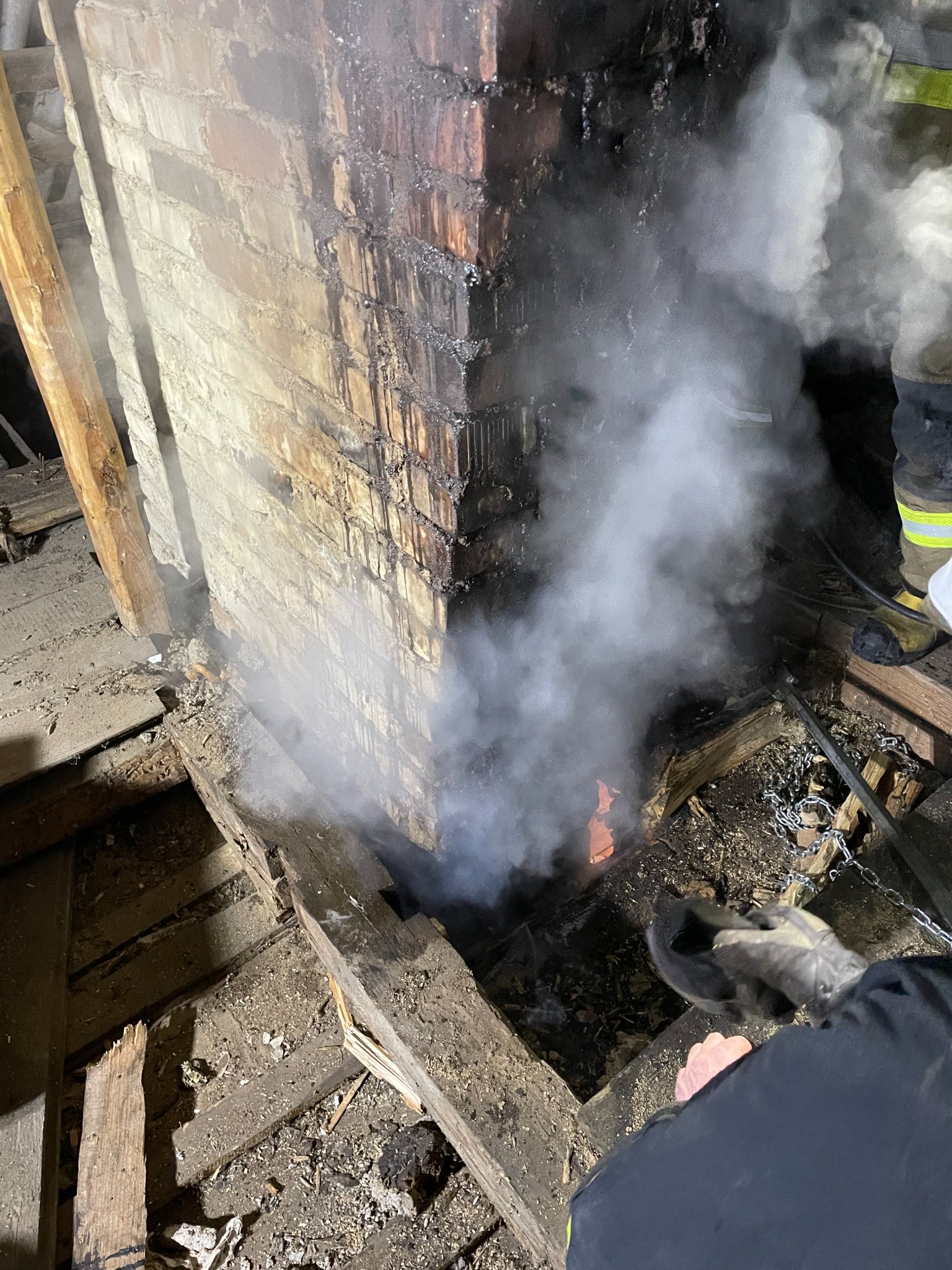 Kiedy strażacy dotarli na miejsce zdarzenia stwierdzono że na nieużytkowanym poddaszu budynku panuje silne zadymienie. Dym wydobywał się również spod pokrycia dachu. Sadza paliła się na całej długości przewodu kominowego. Mieszkańcy bezpiecznie opuścili budynek, nikt nie odniósł obrażeń.
