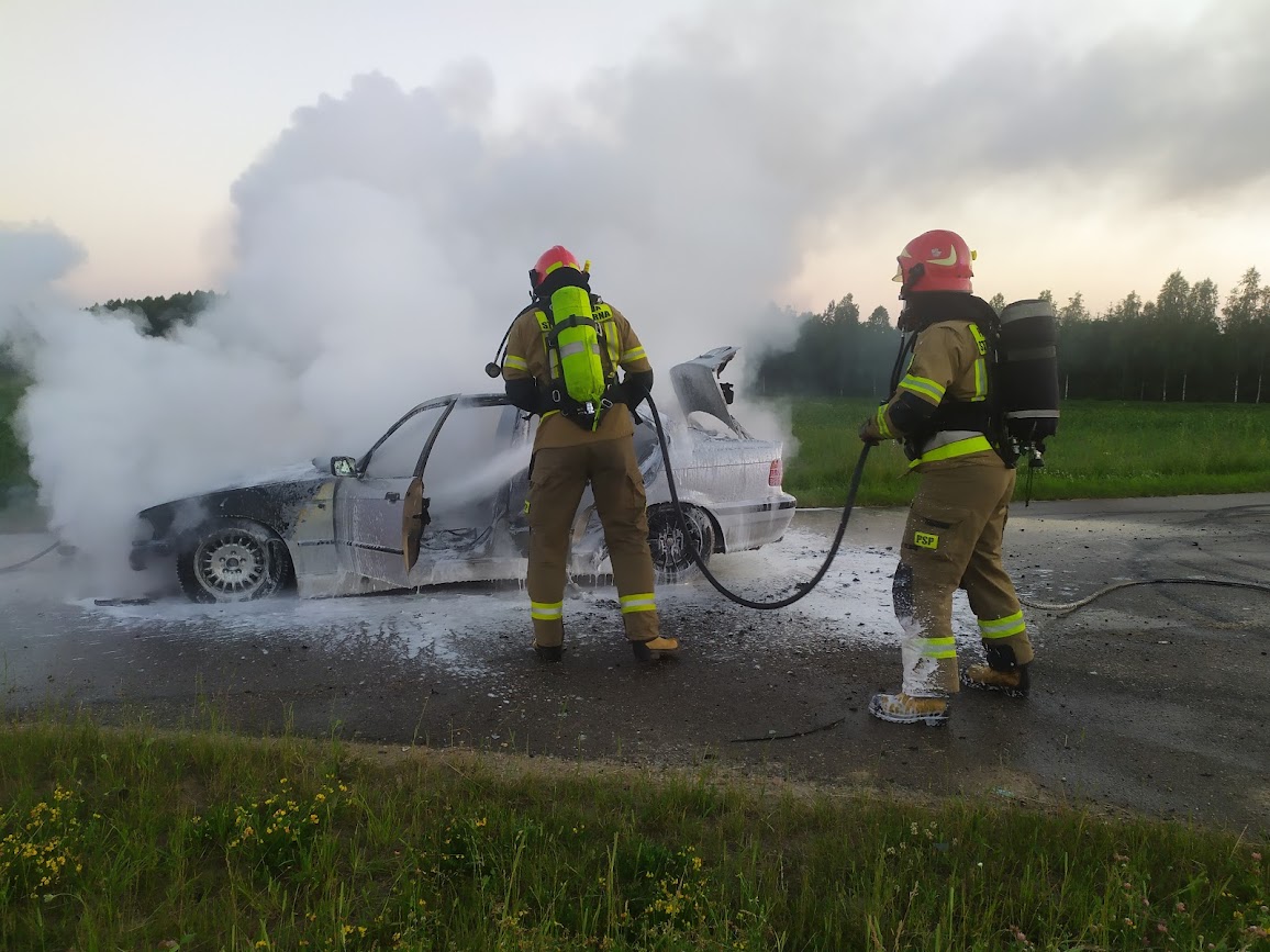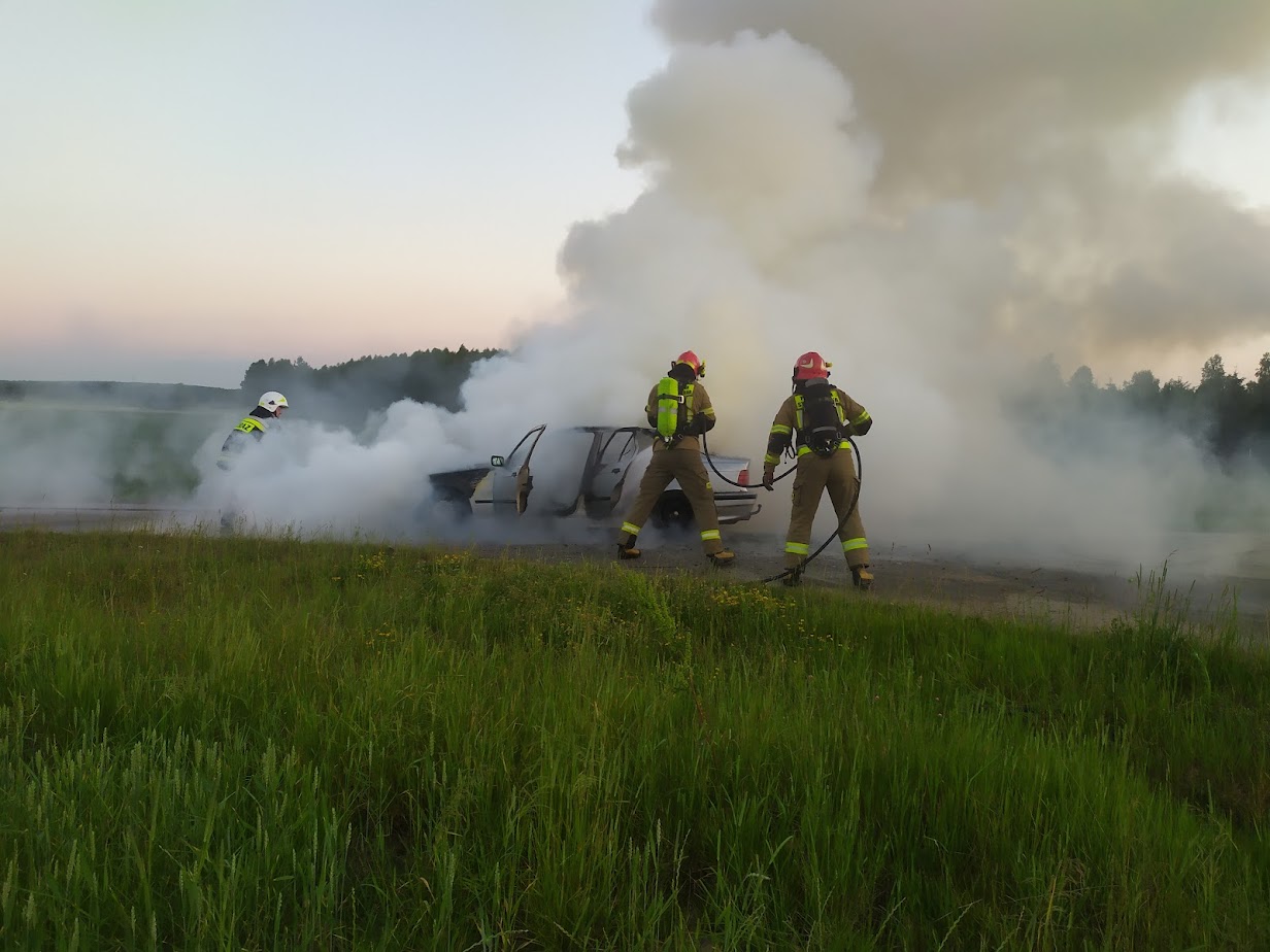 26 czerwca 2022 r. o godz. 20:38 do dyżurnego Stanowiska Kierowania Komendanta Powiatowego PSP w Bielsku Podlaskim wpłynęło zgłoszenie o pożarze samochodu osobowego na drodze powiatowej nr 1679B w Topczykałach.