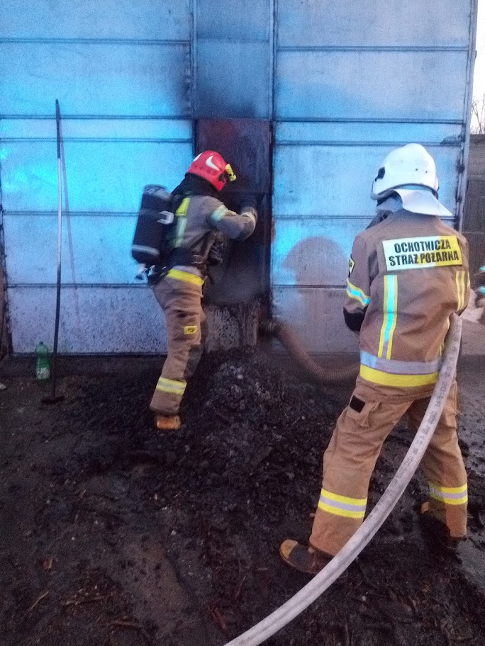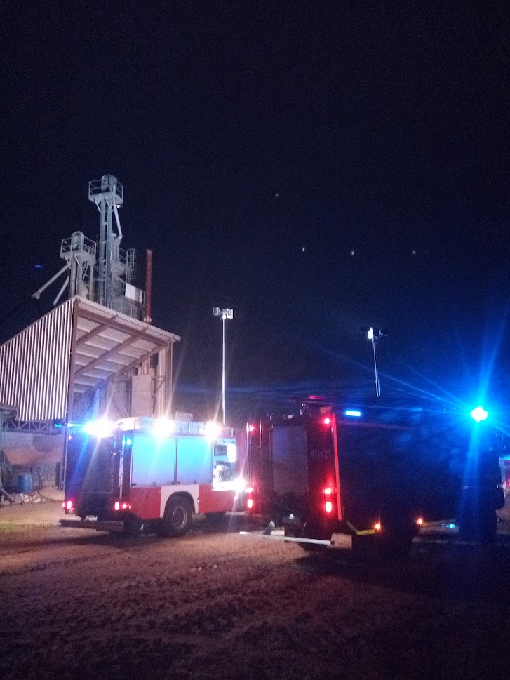 Na miejscu strażacy zastali dym wydobywający się z suszarni, która przylegała do dwóch magazynów zboża.