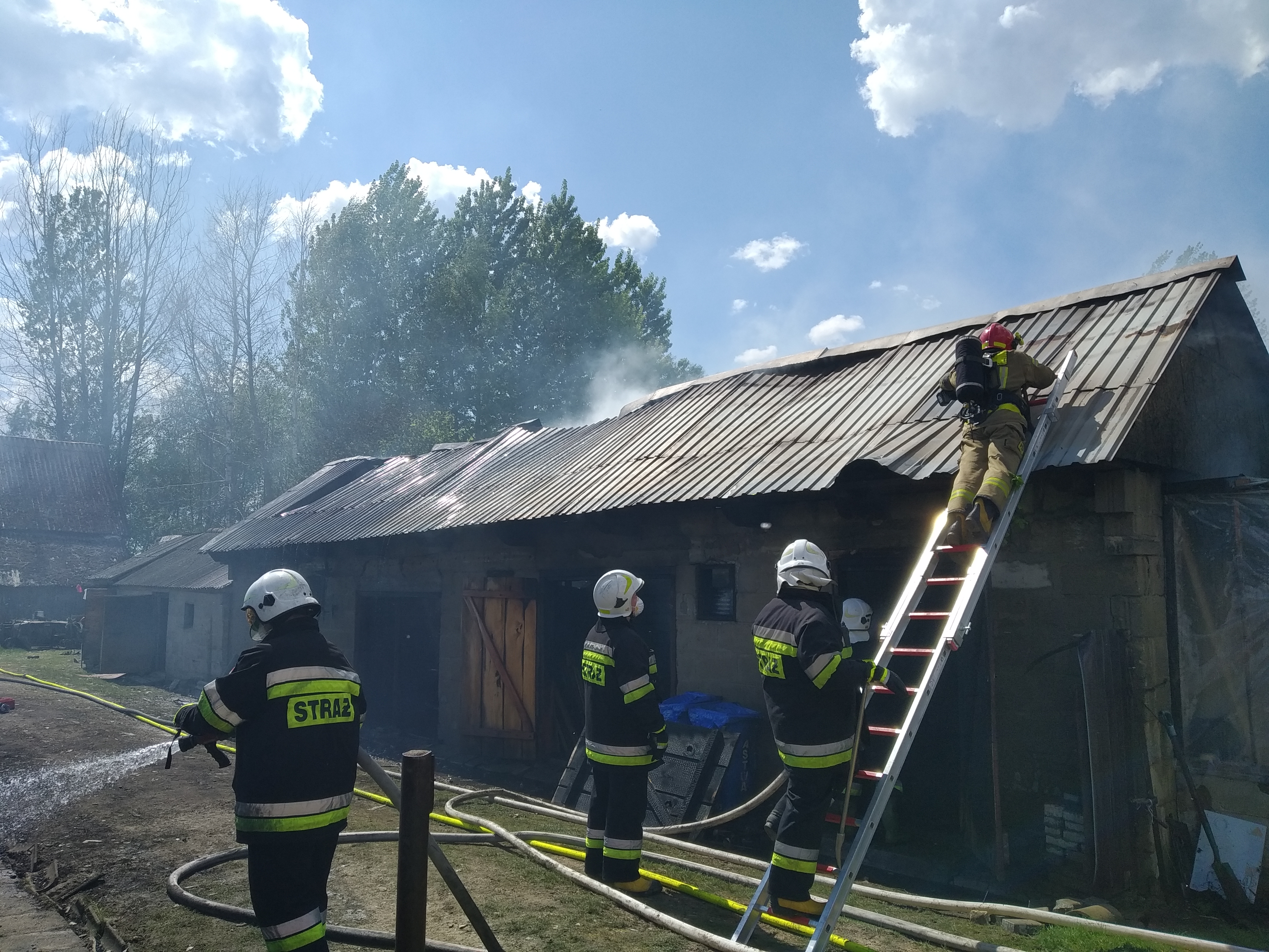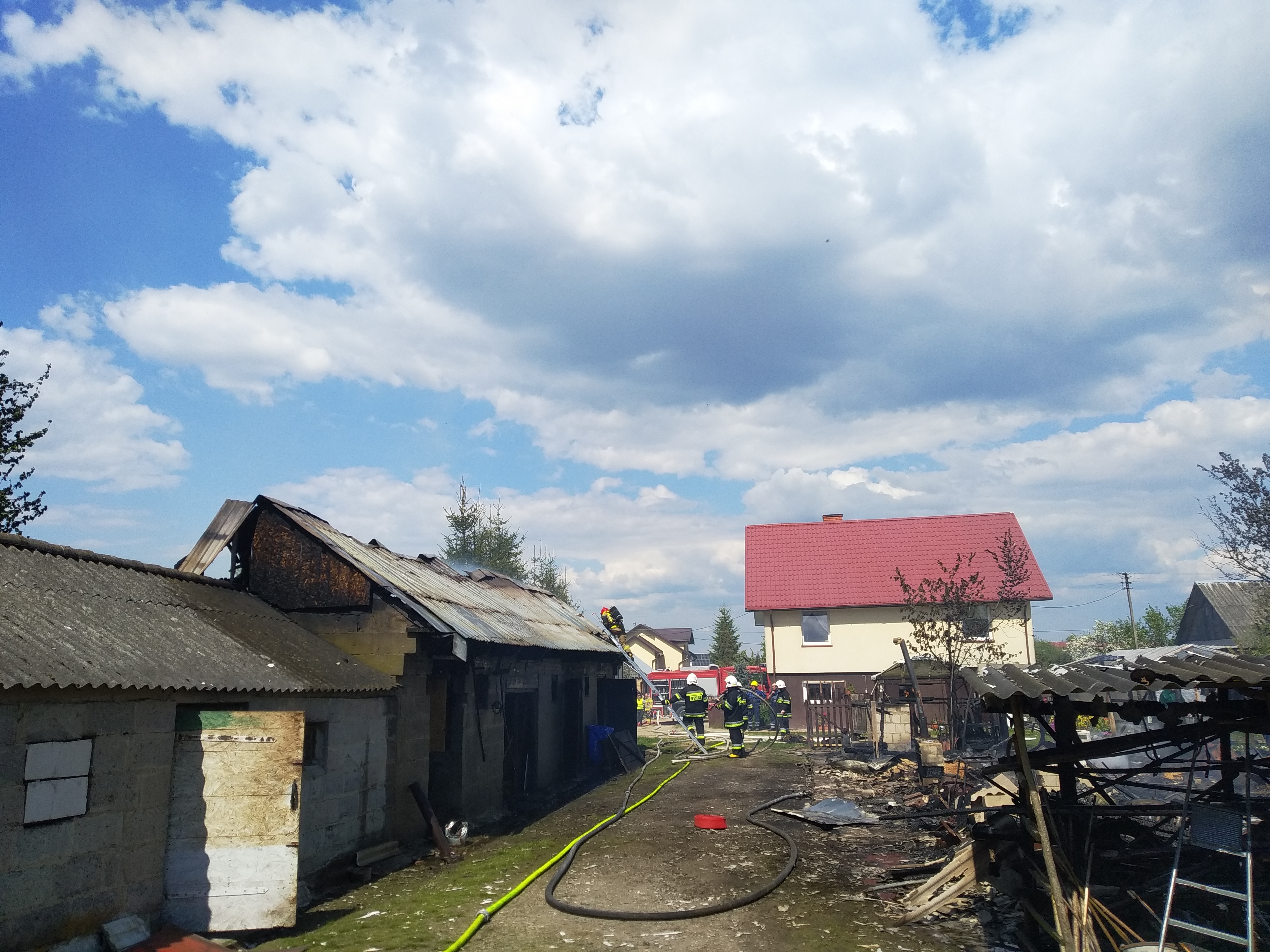 Po przybyciu na miejsce zdarzenia strażacy zastali rozwinięty pożar trzech budynków usytuowanych na jednej posesji. Ogień zagrażał sąsiednim budynkom gospodarczym oraz pobliskiemu budynkowi mieszkalnemu. W wyniku pożaru nikt nie odniósł obrażeń.