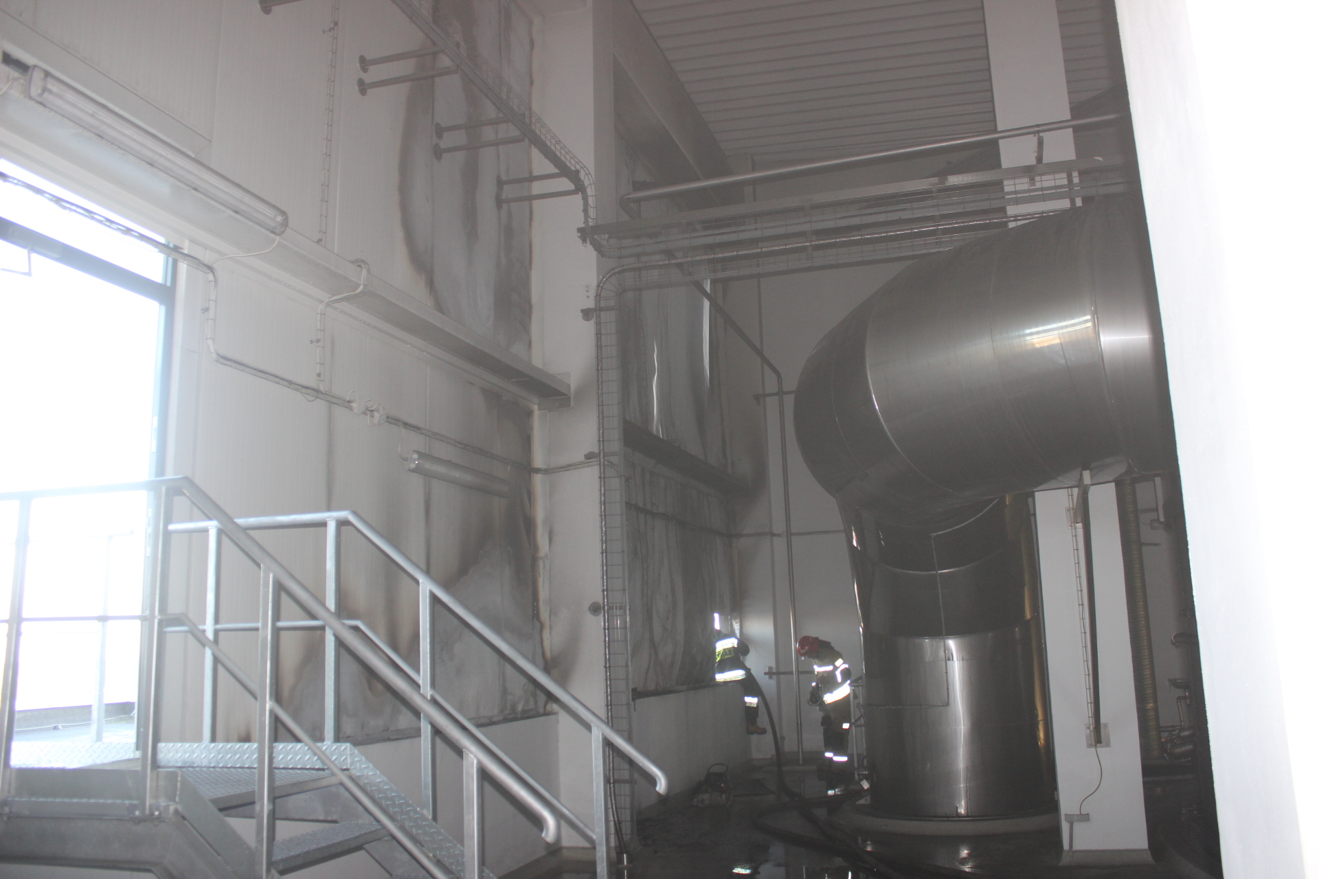 W chwili przybycia zastępów straży pożarnej na miejsce zdarzenia stwierdzono, że pożarem objęte są pomieszczenia na III i IV piętrze budynku proszkowni, którego wysokość wynosi około 38 metrów. Ogień rozprzestrzeniał się wewnątrz ścian. Wszyscy pracownicy opuścili budynek przed przybycie straży pożarnej.